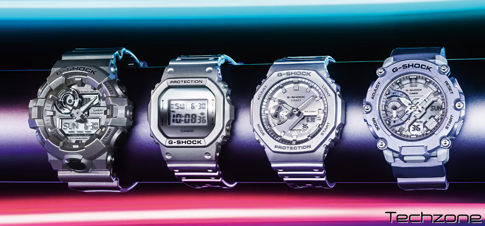 Поверніться у минуле з ретрофутуристичним дизайном G-SHOCK у металевому сріблястому кольорі. Уявні вінтажні уявлення про майбутнє проектуються в класичних DW-5600, GA-700 та GA-2200 з їхніми культовими великими корпусами, а також восьмикутному дизайні GA-2100. Майбутнє минулих років у ефірному металевому сріблі, прямо зі сторінок класичної наукової фантастики, тут і зараз.