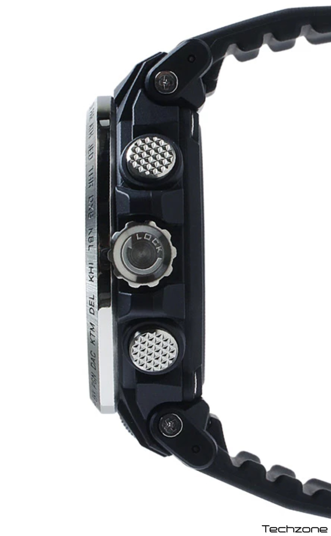 Цей чоловічий спортивний годинник CASIO PRW-61-1AER з кварцовим механізмом і полімерним корпусом вирізняється водостійкістю до 100 WR, а також багатством функцій: підсвічування, таймер, індикація дня тижня, компас, другий час, радіоконтроль, автоматичний календар, індикація місяця, тактичний годинник, сонячна батарея, будильник, секундомір, висотомір, барометр, термометр і індикація дати. Гарантія 24 місяці.