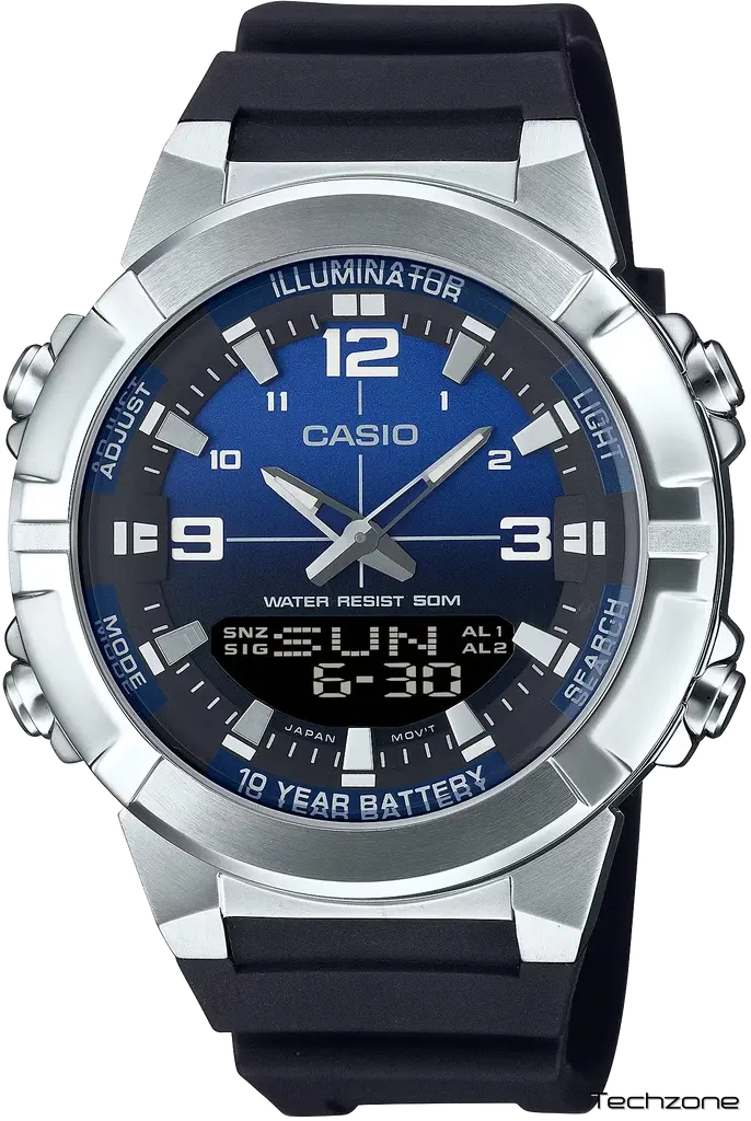 Точний кварцовий механізм із аналого-цифровою індикацією. Корпус виготовлений із високоякісної нержавіючої сталі 316L з високими антикорозійними властивостями. Світлодіодне підсвічування. На циферблаті відображається поточне число, місяць, рік та день тижня. функція хронографа. функція таймера. Таймери зворотного відліку нагадають Вам про поточні чи особливі події, видавши звуковий сигнал у встановлений час. Будильник. Акумулятор забезпечує годинник достатнім живленням приблизно на 10 років. Нотатник. Збережені імена та телефонні номери завжди під рукою завдяки вбудованій базі даних. Відображення поточного часу в основних містах та конкретних областях по всьому світу. Після налаштування автоматичний календар завжди відображає точну дату.