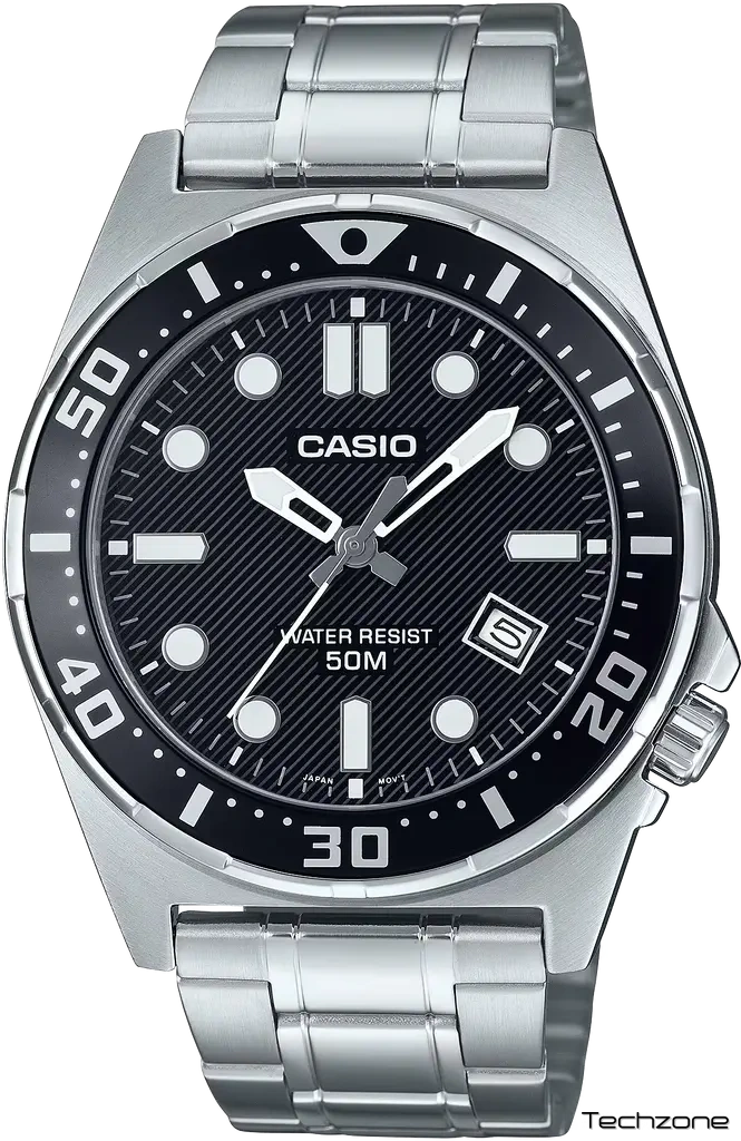Корпус і браслет зроблені з нержавіючої сталі, безель з алюмінію. MTD-135 самі по собі досить компактні — 50 × 43.6 × 9.3 мм. Для порівняння, розміри MTD-125 становлять 46.5 × 45.6 × 10.4 мм. Хіба що 130-ті виглядають трохи “витягнутими” за висотою. Цікавий вигляд має розташування заводної голівки нарівні з позначкою 4 годин — щоб годинник не перешкоджав згинанню зап’ястя.