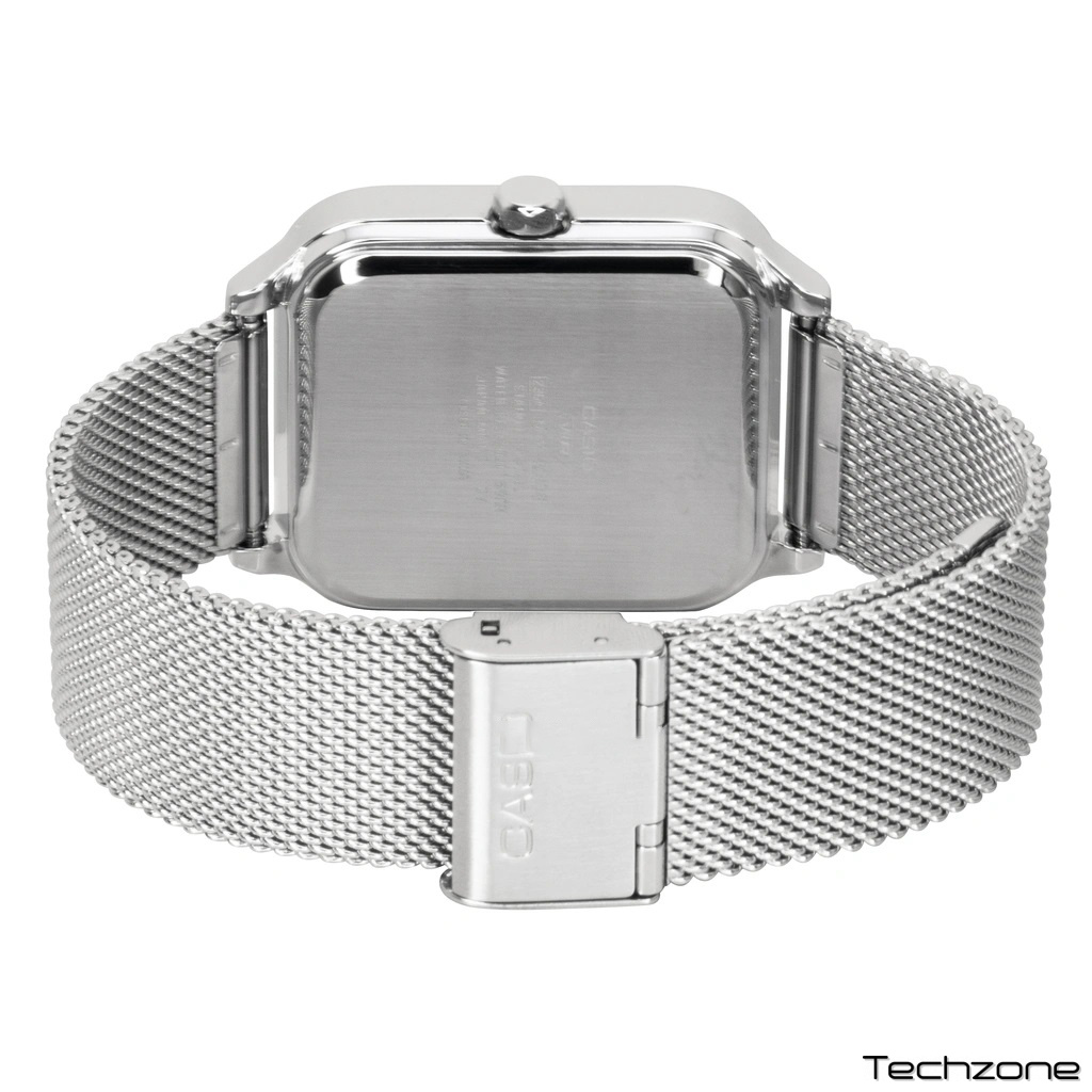 Цей витончений годинник у корпусі з нержавіючої сталі поєднує в собі класичну естетику та щоденну практичність. Завдяки компактним розмірам 44,5 × 34 × 9,4 мм та малій вазі 81 г, модель виглядає вишукано та майже не відчувається на руці. Ремінець з нержавіючої сталі оснащений зручною регульованою застібкою і розрахований на обхват зап'ястя від 150 до 205 мм.