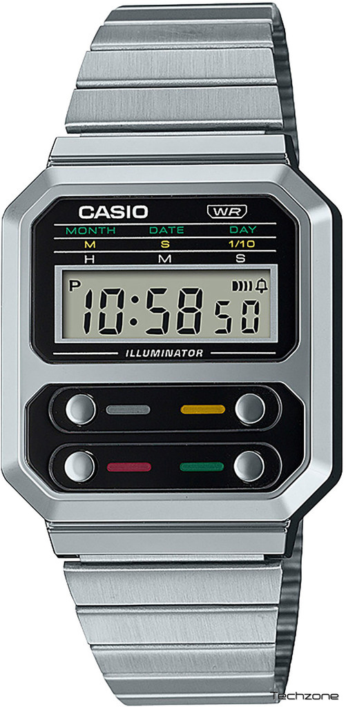 Побалуйте свого внутрішнього гаджет-гіка цим стильним годинником без гендерних позначень безпосередньо з колекції Casio Vintage. Лінійка A100 віддає шану моделі F‐100, першому годиннику Casio, виготовленому зі смоляного корпусу. Ми зберегли культовий дизайн з чотирма передніми кнопками, але додали металеві компоненти, як і раніше у вінтажному стилі, для оновленого погляду на справжню класику. Виконані в ретро-стилі, але з сучасним функціоналом, ці годинники можуть похвалитися секундоміром, календарем та водонепроникністю для щоденного використання, а також, звичайно ж, світлодіодним підсвічуванням для легкого читання показників за будь-якого освітлення. Використовуйте застібку-ковзанку, щоб легко відрегулювати довжину ремінця для ідеальної посадки.