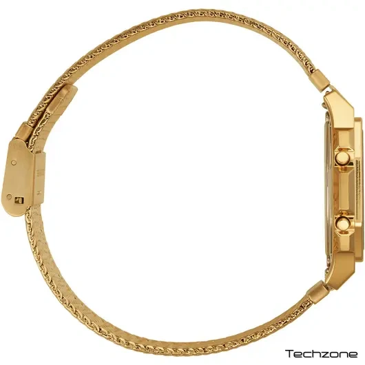 Підніміть ретро на новий рівень з ноткою розкоші в цьому високоякісному металевому годиннику. Сітчастий браслет в античному стилі, виготовлений за візерунком красивого складного в'язання, створює насичений вінтажний вигляд, а кольори та оздоблення нагадують ручну роботу. Контрастні тонкі та дзеркальні покриття на корпусі з нержавіючої сталі та лінії на склі, обробленому методом парового осадження, створюють виняткову металеву текстуру. Завдяки приглушеному золотому вигляду ви будете раді будь-чому, що принесе вам ваш графік, незалежно від часу доби. Цей годинник не просто модний аксесуар, він пропонує практичні функції, такі як секундомір, будильник, світлодіодне підсвічування для легкого читання навіть у темряві та водонепроникність для щоденного використання, щоб позбавити вас турбот навіть під час раптової зливи.