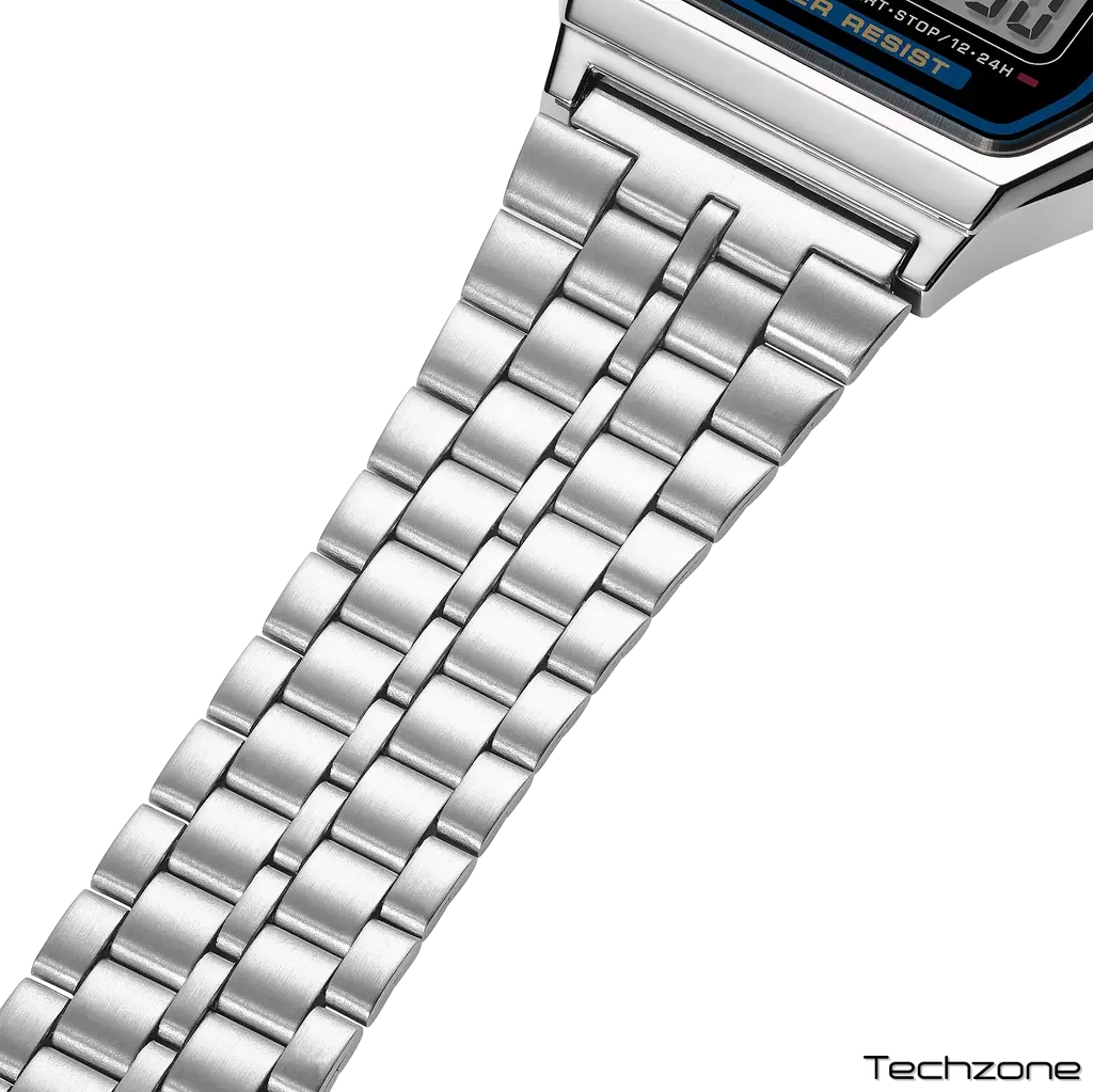 Знаходьте в собі внутрішній ретро-стиль із цим компактним, легким і функціональним електронним годинником. Він ідеально підходить для будь-якого дня і пропонує безліч зручних функцій. Циферблат підсвічується збоку за допомогою мікропідсвічування, а також має секундомір з точністю показань 1/100 сек і часом вимірювання 1 год. Ви також можете вибрати між 12-ти та 24-х годинним форматом часу. Застебніть їх легко і швидко за допомогою застібки, що розкладається, яку можна розстебнути одним простим дотиком.