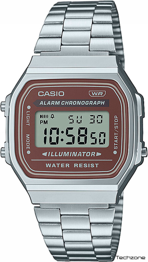 Годинник CASIO A168WA-5AYES - неперевершене поєднання елегантності та функціональності. Їхній стильний сріблястий корпус прямокутної форми з полімеру має надзвичайно вишуканий вигляд. Однак, привабливість цього годинника не тільки в його привабливому зовнішньому вигляді. Завдяки кварцовому механізму він має точність ходу і довговічність. Крім того, полімерне скло і водозахист WR30 забезпечують надійний захист від зовнішніх пошкоджень і впливу води. Зручний браслет з нержавіючої сталі забезпечує комфортну посадку на руку. Коричневий колір циферблата і цифрова індикація роблять читання часу максимально простим і доступним. Крім того, годинник CASIO A168WA-5AYES оснащено такими функціями, як будильник, індикація дня тижня, підсвічування, індикація дати, автоматичний календар і секундомір, що робить його не тільки стильним аксесуаром, а й незамінним помічником у повсякденних справах. З цим годинником ви завжди матимете не лише гарний смак, а й комфортний час.