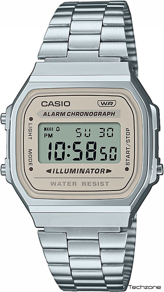 Приглушені кольори циферблата в гамі спокійних сірих відтінків додають відчуття міського ретро-стилю до класичного поєднання дизайну квадратного корпусу в поєднанні з металевим ремінцем. Цифровий годинник для поціновувачів моди, які люблять виражати свій власний стиль, залишаючись в курсі останніх тенденцій.