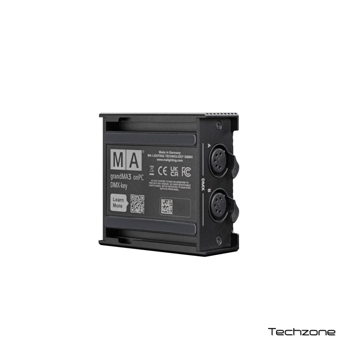 grandMA3 onPC DMX-key — це розумне і просте рішення для управління вашим обладнанням за допомогою програмного забезпечення grandMA3 onPC. Ви отримуєте повну потужність з 4096 параметрами безпосередньо через USB-з'єднання з ПК, на якому встановлено програмне забезпечення grandMA3 onPC. DMX-key працює за принципом «підключи і працюй» — немає необхідності в мережевому з'єднанні або налаштуванні пристрою. Від клубів до невеликих сцен, від храмів до телестудій або монтажних стійок — grandMA3 onPC DMX key ідеально підходить для багатьох різних застосувань.