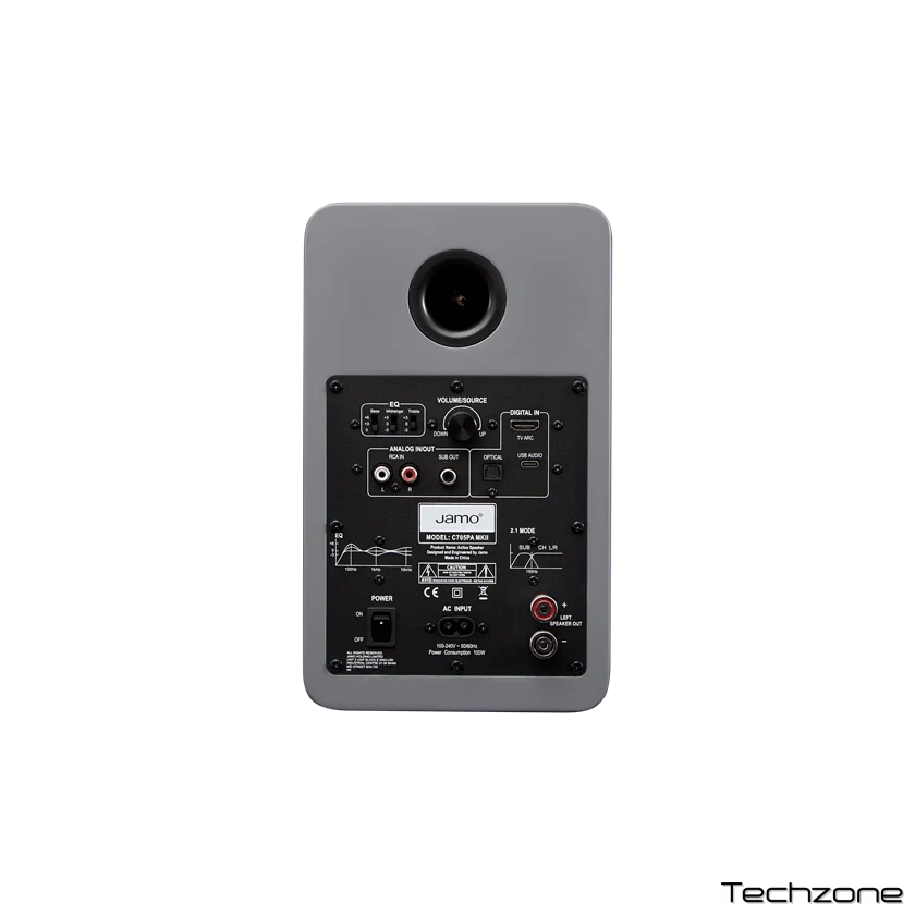 - НЧ: 1 x 105 мм (4 дюйми) низькочастотний динамік, гібридний конічний дифузор (HCCC), об'ємний динамік з довгим зміщенням (LDS), алюмінієвий фазовий штекер