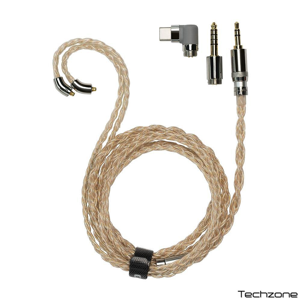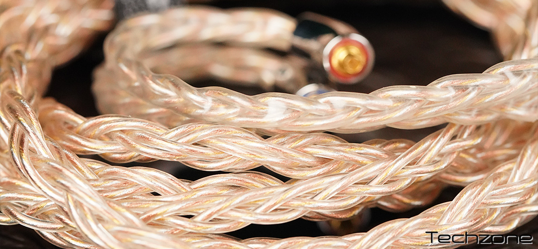 Кабель оснащений L-подібними розширеними роз'ємами MMCX. Середня частина та штекер виготовлені з медичної нержавіючої сталі 316L, яка полірується вручну до дзеркального блиску та проходить гальванічне покриття ПВХ, що робить її не тільки більш міцною, але й зручнішою під час носіння. Зовнішня оболонка кабелю виготовлена з прозорого німецького ТПУ, завдяки високій стійкості матеріалу до зносу та старіння, його гладкості та красивій напівпрозорості, а також комфорту.