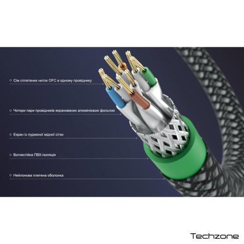 Matrix Audio використовує багатожильні кабелі як матеріал для цього мережевого кабелю, що суттєво відрізняється від традиційних одножильних кабелів. Вони складаються з чотирьох пар багатожильних провідників, скручених між собою. Кожен сердечник містить сім жил з дроту з OFC (безкисневої міді) діаметром 0.16 мм. Кожна пара дротів індивідуально екранована алюмінієвою фольгою. Зовнішній шар є другим екрануючим шаром, що складається з оцинкованої мідної сітки, яка ефективно ізолює внутрішні перехресні перешкоди та зовнішні перешкоди, що дає змогу легко створити мережу 10 Gigabit Ethernet.