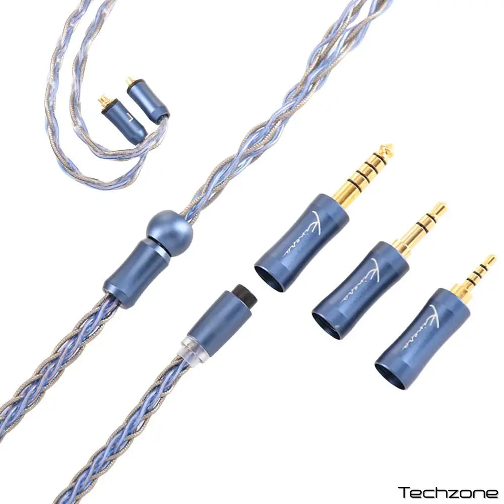 Кабель для оновлення IEM Kinera Ace 2.0 виготовлений із використанням серцевини з матеріалу високої чистоти. Кабель виготовлений із високоякісної срібної фольги та проводів із кисневого сплаву. Він складається з 4-х ниток із срібної фольги з 7 нитками по 0,2 мм кожна, сплетених разом, та 4-х нитками із мідного сплаву, по 28 ниток діаметром 0,05 мм кожна.