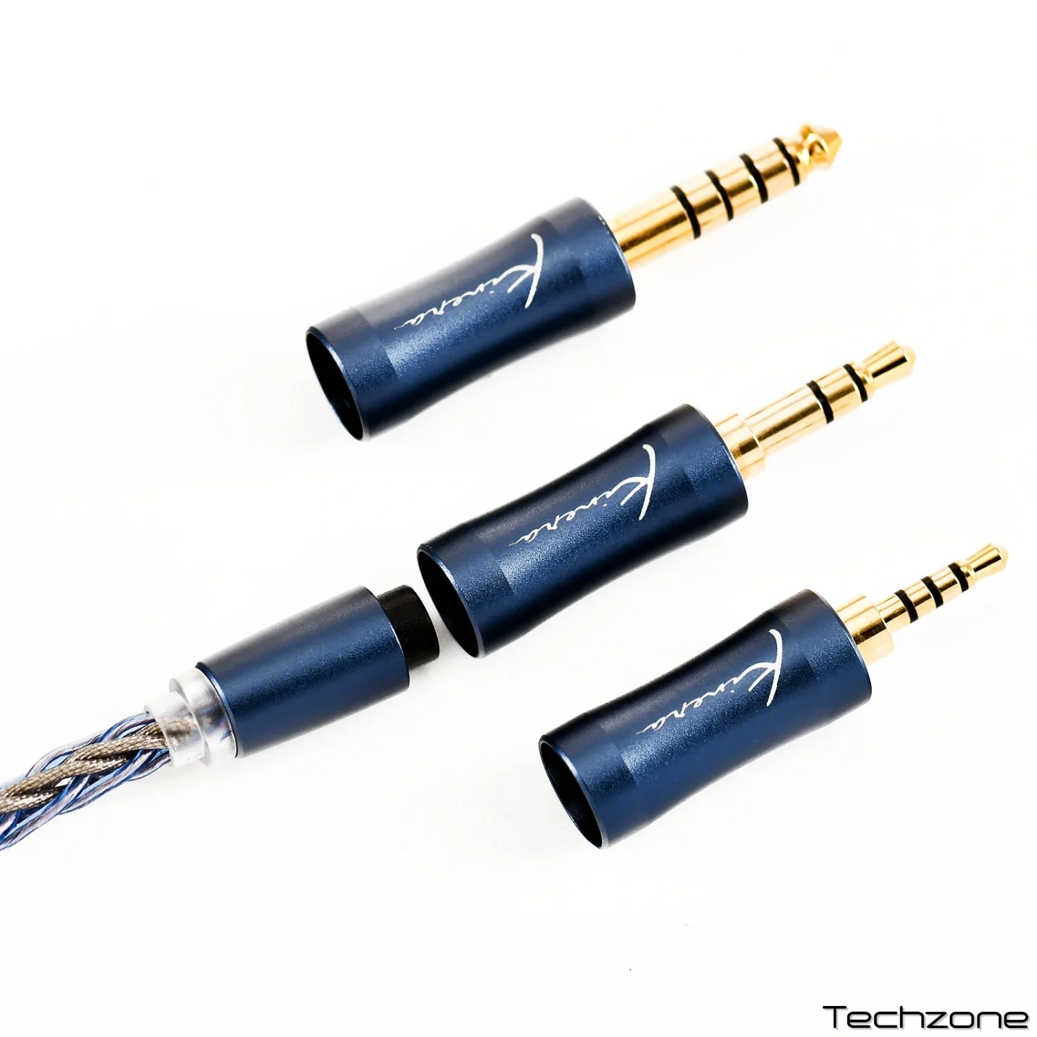 Kinera Ace 2.0 – це високоякісний модульний кабель зі змінною кінцевою заглушкою. У комплект поставки входять три змінні вилки, включаючи вилку 2,5 мм, 3,5 мм та 4,4 мм, що робить кабель придатним для більшості пристроїв-джерел. Замінити вилку досить просто: просто витягніть стару, поєднайте контакти і щільно вставте на місце нову.
