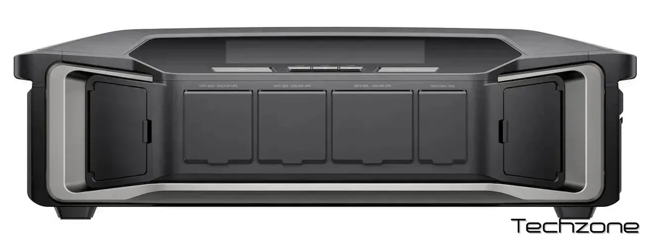 | Вихід змінного струму | Розряд: 230 В, 50 Гц, загальна потужність 6 900 Вт, максимальна 16 А (×4) на порт, максимальна 30 А (×1) на порт Байпас: 220-240 В, 50/60 Гц, загальна потужність 2 900 Вт, максимальна 12,5 А (×5) на порт |