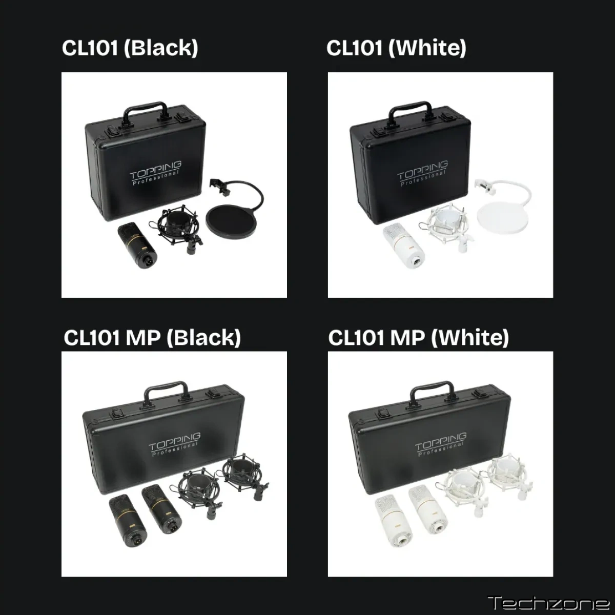 Topping Professional CL101 MP – це комплект студійних конденсаторних мікрофонів з підключенням через XLR. В комплекті: 2 мікрофони, 2 павуки-тримачі, кейс для зберігання.