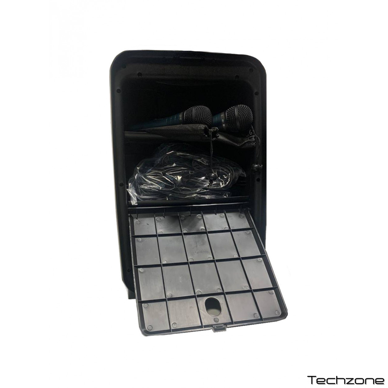 28,5 х 25 х 45 (один гучномовець), 29,4 х 18 х 46 (мікшер)