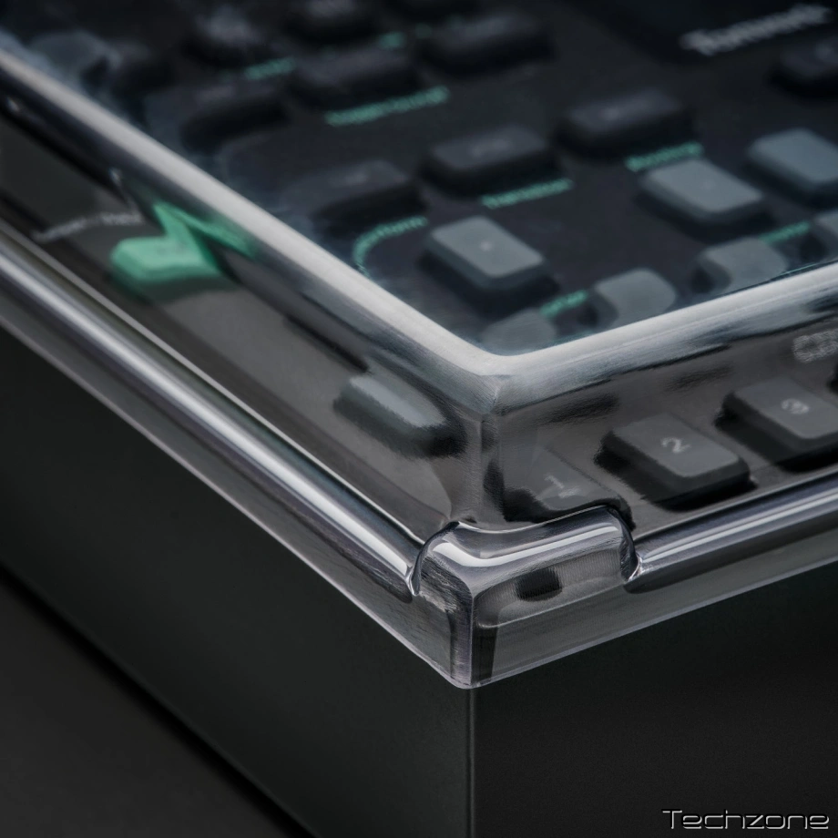 Корпус виготовлений із твердого прозорого пластику, який зберігає форму навіть при активному використанні. Матеріал стійкий до щоденних навантажень. Поверхня не спотворює вигляд пристрою, дозволяє бачити органи керування без необхідності знімати кришку під час коротких пауз у роботі. Такий формат зручний для студій, де обладнання постійно знаходиться у відкритому доступі.