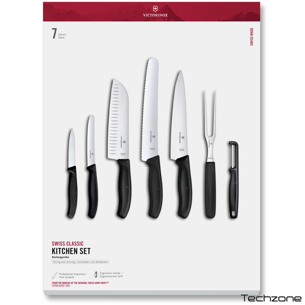 Victorinox SWISS CLASSIC Набір кухонний Kitchen Set 7шт чорні ручки (5 ножів, виделка, овочечистка Iota) (подарункова коробка) Швейцарія 6.7133.71G Гарантія: довічна