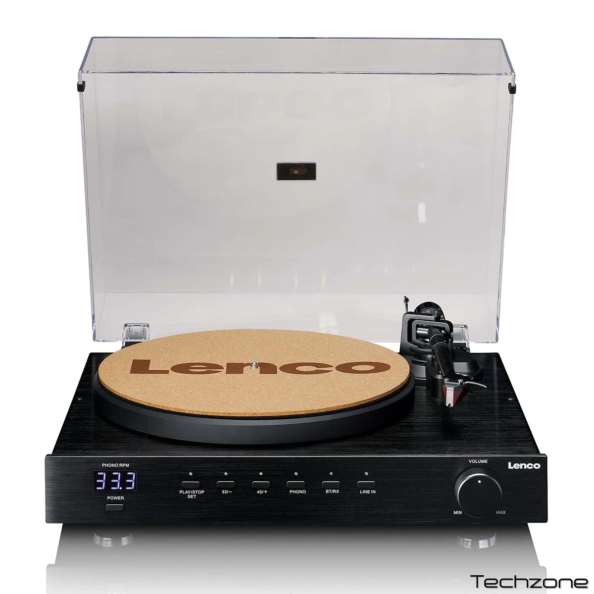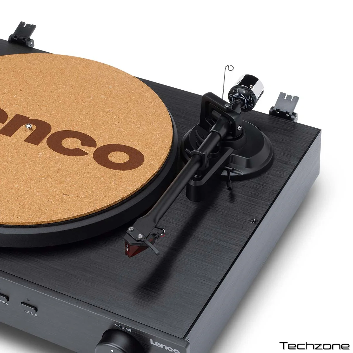 Lenco LS-700BK одразу виділяється своїм потужним та професійним зовнішнім виглядом. Елегантний корпус з передньою панеллю з матового алюмінію випромінює високоякісну аудіотехніку та бездоганно інтегрується з сучасними HiFi-компонентами. Чіткий дисплей швидкості, надійні кнопки керування та надійний регулятор гучності підкреслюють технічну сутність цього програвача, а мінімалістичний дизайн створює відчуття балансу та спокою в будь-якому середовищі прослуховування.