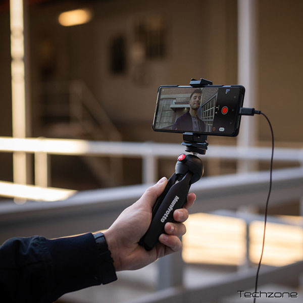 - міні-штатив Manfrotto PIXI з кульовим шарніром і кнопковим фіксатором дає змогу буквально одним рухом встановити смартфон (або камеру) з мікрофоном у потрібне положення;