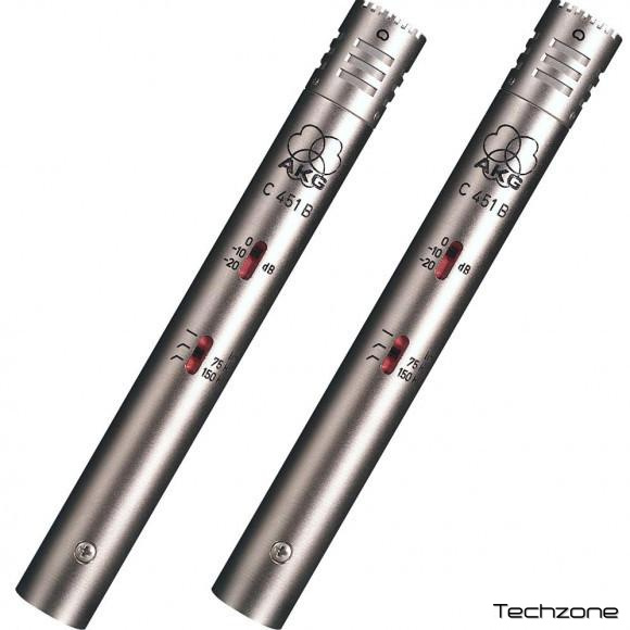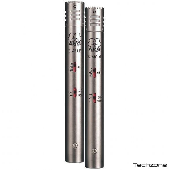 AKG C451 B Stereo Pair - узгоджена пара інструментальних конденсаторних мікрофонів AKG C 451 B, спрямованість кардіоїда, підходить для барабанів, акустичних гітар, фільтр НЧ, атенюатор, чутливість 9 mV/Pa, стерео-бар.