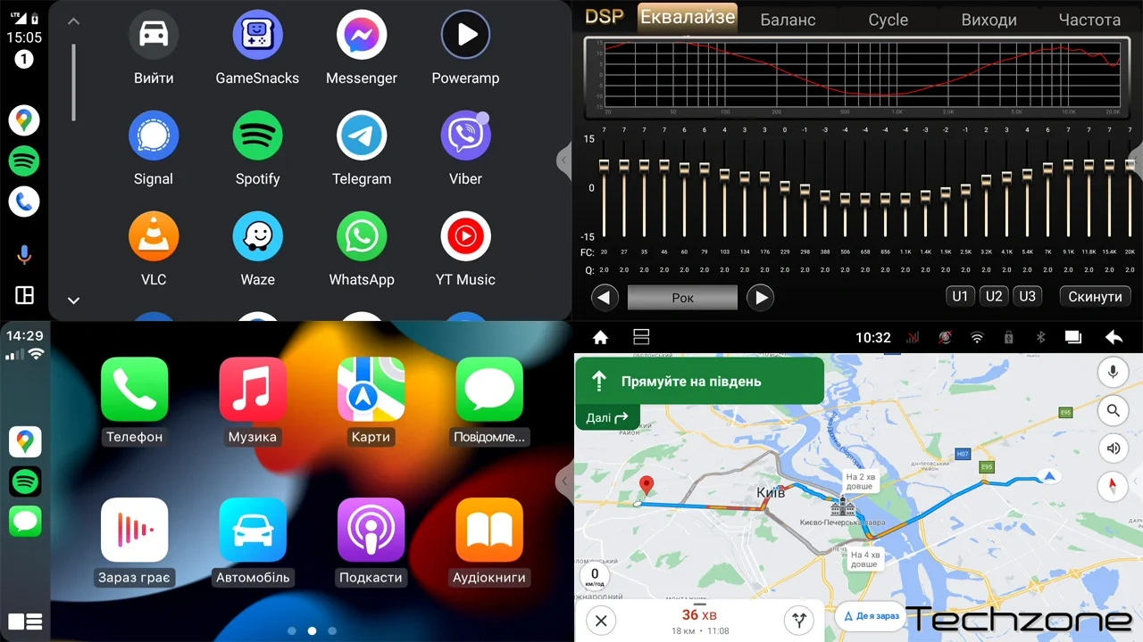 Apple CarPlay і AndroidAuto. PHANTOM DVA-1033 підтримує бездротове підключення Apple CarPlay та підключення Android Auto за допомогою USB кабелю. Це зручні, та головне безпечні способи користуватися функціями смартфону при керуванні автомобілем. Використовуйте навігацію, відправляйте та отримуйте повідомлення смс та в мессенжерах, розмовляйте по телефону, слухайте улюблену музику та ін. Apple CarPlay і Android Auto реалізовані в додатку SpeedPlay.