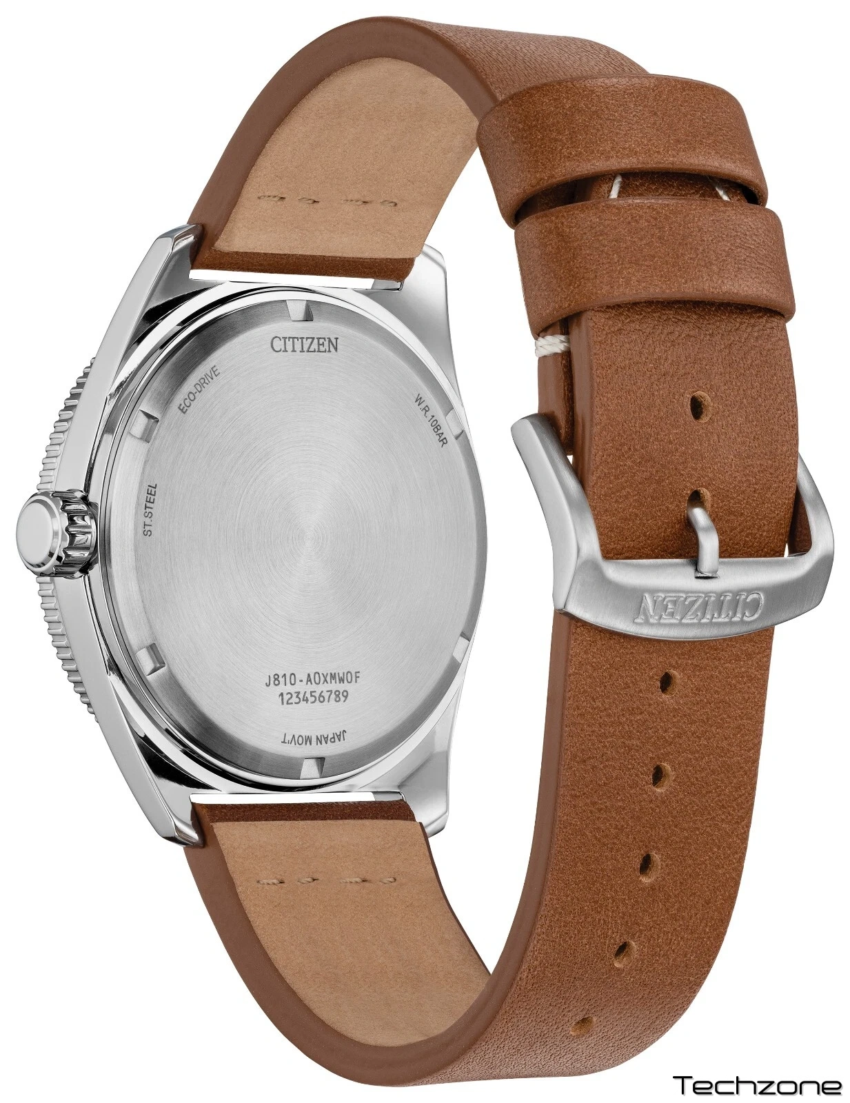 Сріблястий корпус з нержавіючої сталі з коричневим шкіряним ремінцем