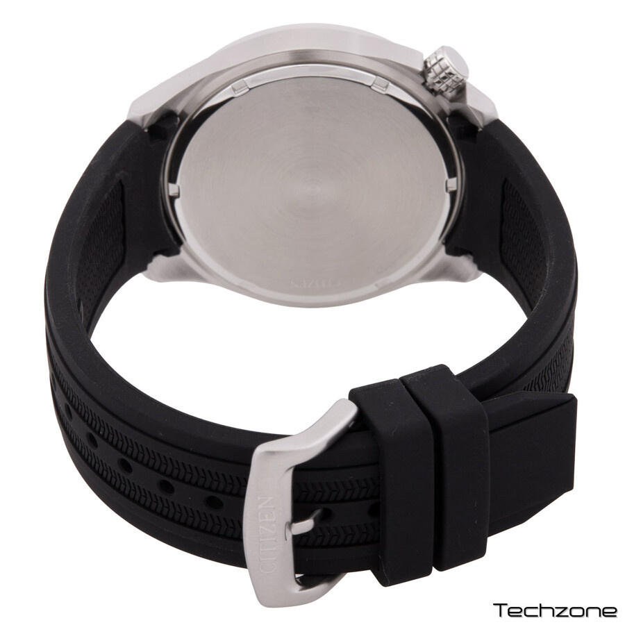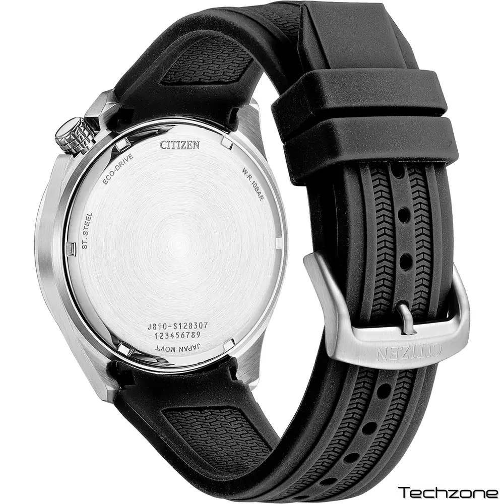 Спортивний годинник, сповнений стилю, відкрийте для себе Men’s Sport. Він має корпус з нержавіючої сталі, чорний каучуковий ремінець і чорний циферблат зі зручним віконцем дати. Додаткові функції включають люмінесцентні стрілки та маркери, а також водонепроникність до 100 метрів. Екологічне живлення від будь-якого освітлення завдяки технології Citizen Caliber Eco-Drive J810. Чорний безель. Чорний циферблат зі сріблястими стрілками та індексними арабськими цифрами, що позначають годину. Хвилинні мітки по зовнішньому обідку. Тип циферблату: аналоговий. Люмінесцентні стрілки та мітки. Індикація дати в положенні «6 годин». Стійке до подряпин мінеральне скло. Цільна задня кришка корпусу. Кругла форма корпусу, розмір корпусу: 44 мм. Застібка-пряжка. Функції: дата, година, хвилина, секунди, живлення від сонячної батареї. Серія Weekender. Стиль спортивного годинника. Етикетка годинника: Japan Movt.