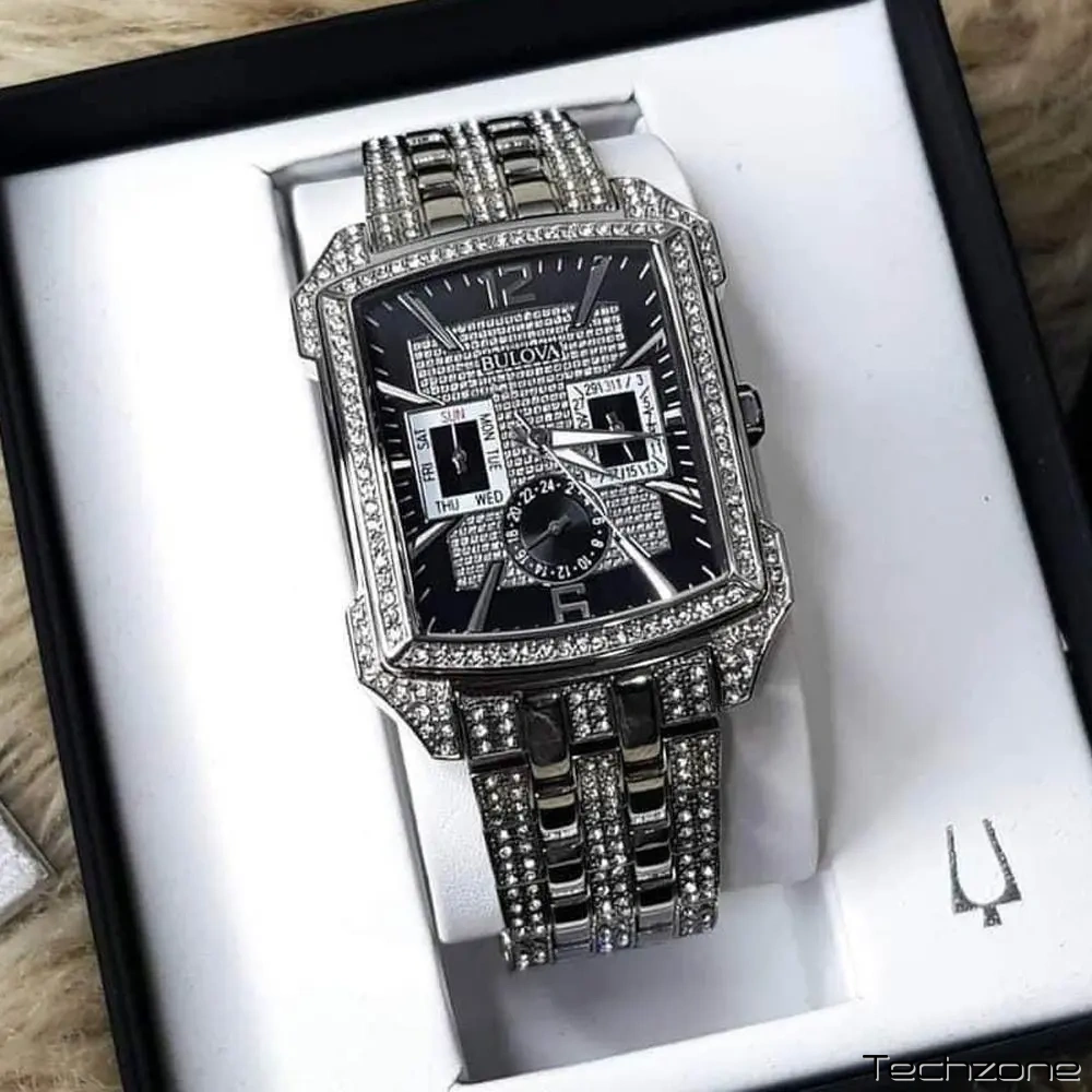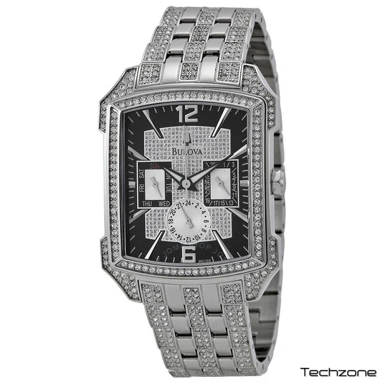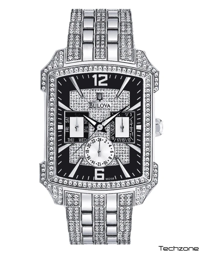 Це оригінальний чоловічий годинник Bulova 96C108 із категорії Елегантних моделей, який виділяється незвичайною прямокутною формою та багатофункціональністю.