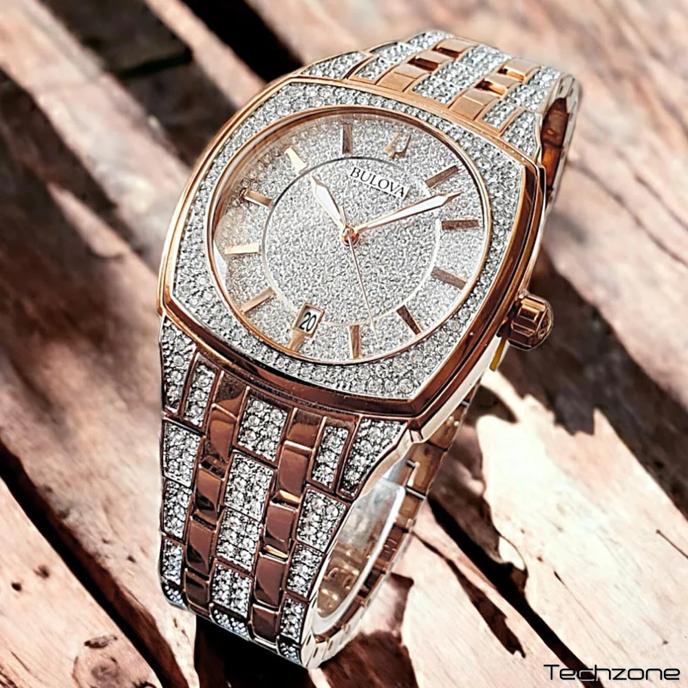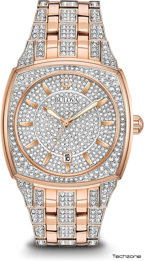 - Містить 582 кристали на безелі, циферблаті та браслеті
