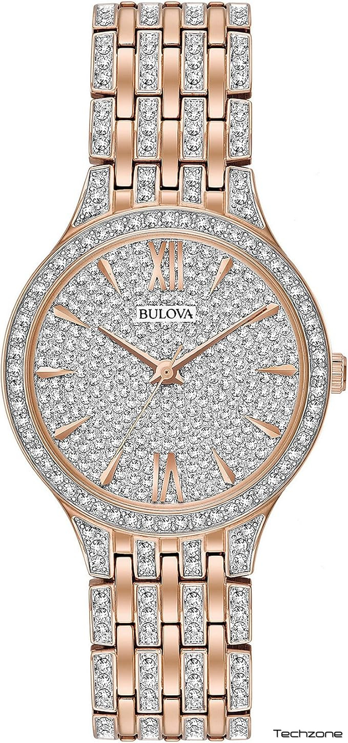 Це вишуканий жіночий годинник Bulova 98L235 із колекції Ladies’ Crystals Collection, який вирізняється тонким дизайном та надзвичайною кількістю інкрустацій.