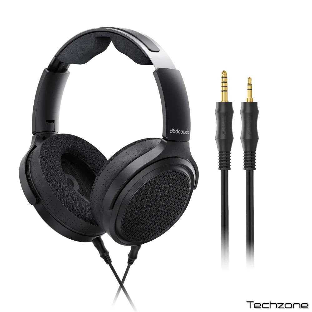 Навушники мають знімний кабель із подвійними 3,5 мм роз’ємами на чашках. В комплект входять два кабелі: один з 3,5 мм штекером, інший – балансний з 4,4 мм, а також адаптер з 6,35 мм на 3,5 мм, що забезпечує широку сумісність із різними джерелами. Такий дизайн дозволяє легко адаптуватися до портативних плеєрів, стаціонарних підсилювачів та DAC-комбінацій, роблячи навушники універсальними як для домашнього, так і для мобільного використання.