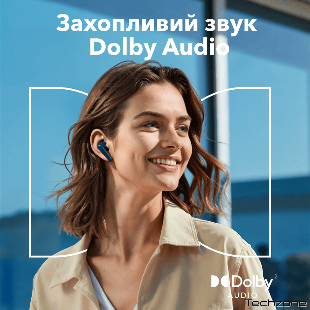 Насолоджуйтесь звуком Dolby Audio, тривалим активним шумозаглушенням та зануренням у світ якісного аудіо.