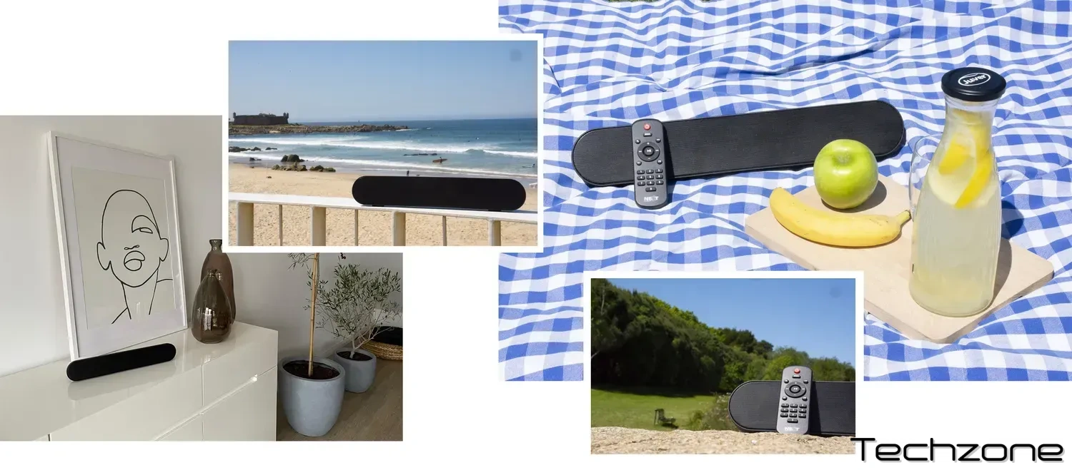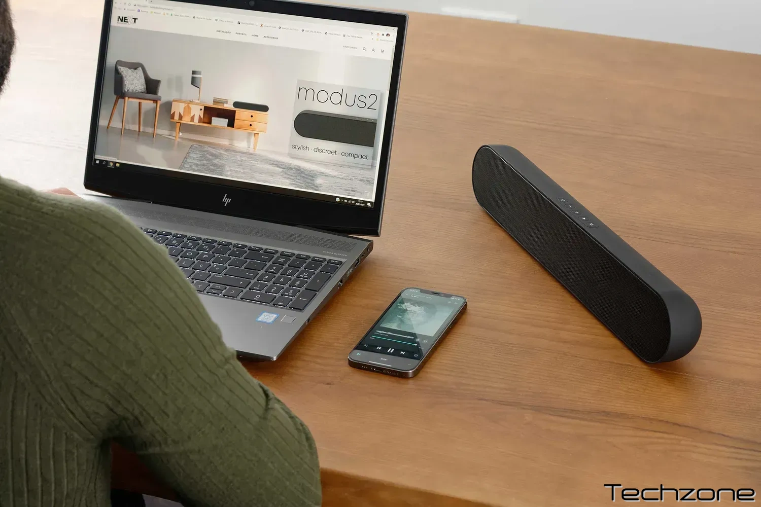 Modus2 — це міні-саундбар з Bluetooth, що працює від батареї та підходить для будь-якого приміщення. Завдяки стриманому та елегантному дизайну його можна розмістити у вітальні, кухні, спальні, офісі, а також використовувати для вечірок з друзями в приміщенні або на відкритому повітрі, забезпечуючи до 6 годин відтворення музики, де б ви не були, завдяки батареї, що входить до комплекту. З Modus2 ви отримаєте відчуття живої музики завдяки 3D-стереотехнології та двом пасивним випромінювальним сабвуферам.