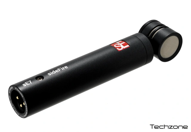 Кут 90 градусів. Пара конденсаторних мікрофонів з малою електретною діафрагмою, які предназначені для вирішення широкого спектра студійних і концертних завдань. Мікрофон має дискретну схему A класу і безтрансформаторний вихід, що забезпечує чисте природне звучання на всьому діапазоні частот і дозволяє працювати з абсолютно будь-якими інструментами. Маючи короткий сигнальний тракт і сучасну начинку, sE7 є самим тихим мікрофоном в своєму класі.