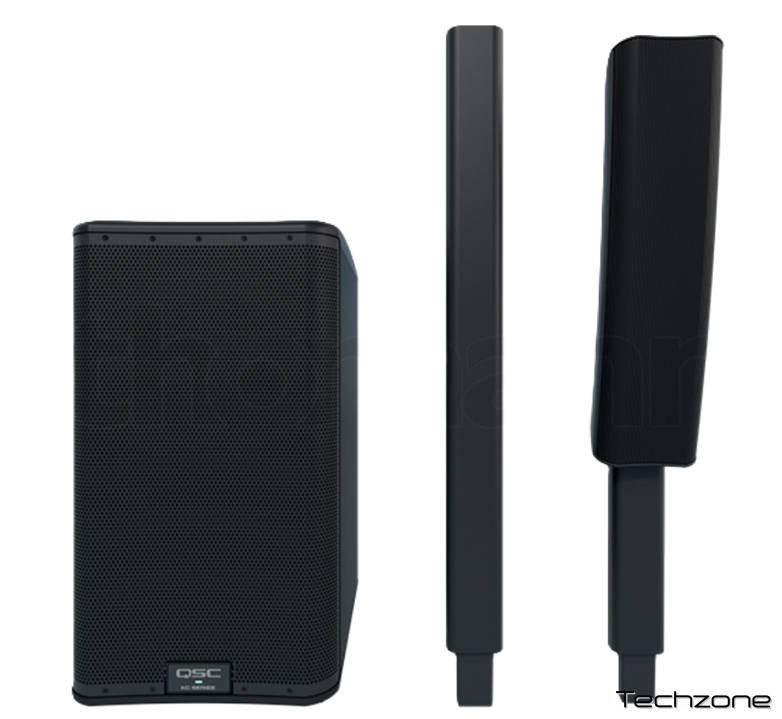 - 3-смугова акустична система з 12-дюймовим (305 мм) сабвуфером, двома 4-дюймовими (102 мм) середньочастотними динаміками з високим виходом та 1-дюймовим (25,4 мм) компресійним ВЧ-драйвером у поєднанні з фірмовим хвилеводом QSC LEAF™.