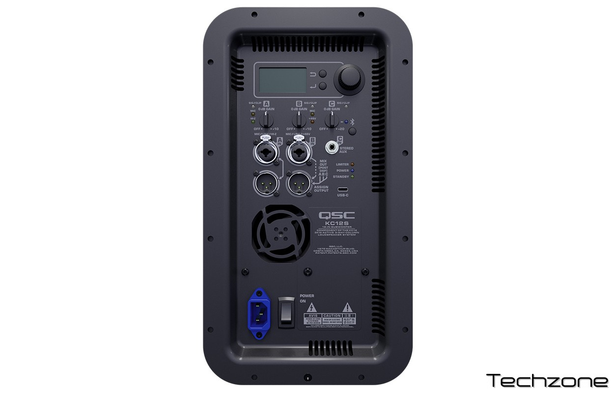 Портативна система KC12 складається з портованого сабвуфера з 12-дюймовим драйвером, що працює на частоті до 40 Гц. Інноваційний дизайн корпусу для середньо-/високочастотних динаміків включає 1-дюймовий компресійний драйвер у поєднанні з інноваційним хвилеводом QSC LEAF™ (Length-Equalized Acoustic Flare), а також два 4-дюймові середньочастотні драйвери з високим кутом екскурсії. Завдяки цій 3-смуговій конструкції система забезпечує видатне повнодіапазонне горизонтальне покриття 145 градусів та 35 градусів вертикального покриття, спрямованого на аудиторію, з чистим та природним звуком на всіх рівнях вихідної потужності.
