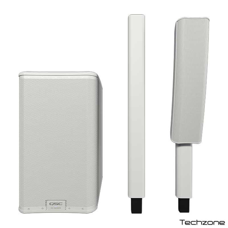 - 3-смугова акустична система з 12-дюймовим (305 мм) сабвуфером, двома 4-дюймовими (102 мм) середньочастотними динаміками з високим виходом та 1-дюймовим (25,4 мм) компресійним ВЧ-драйвером у поєднанні з фірмовим хвилеводом QSC LEAF™.