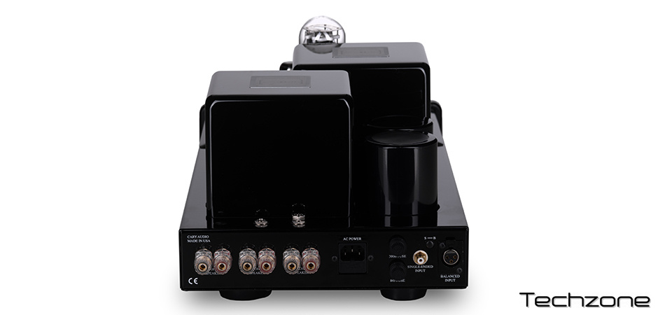 Задня панель пропонує на вибір 4, 8 або 16 Ом виходи на гучномовці, які дуже якісні і надійні. Є вхідне гніздо RCA і вхідне гніздо XLR з перемикачем, що обирається користувачем, і два видимих запобіжника - один для 300B і один для вихідної лампи. У розетці змінного струму також є вбудований запобіжник. Шнур живлення знімний.