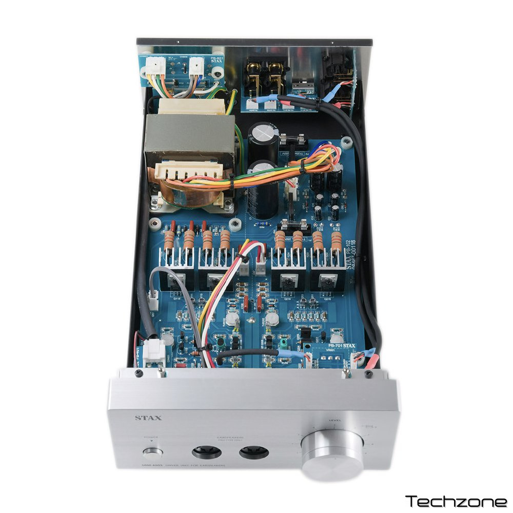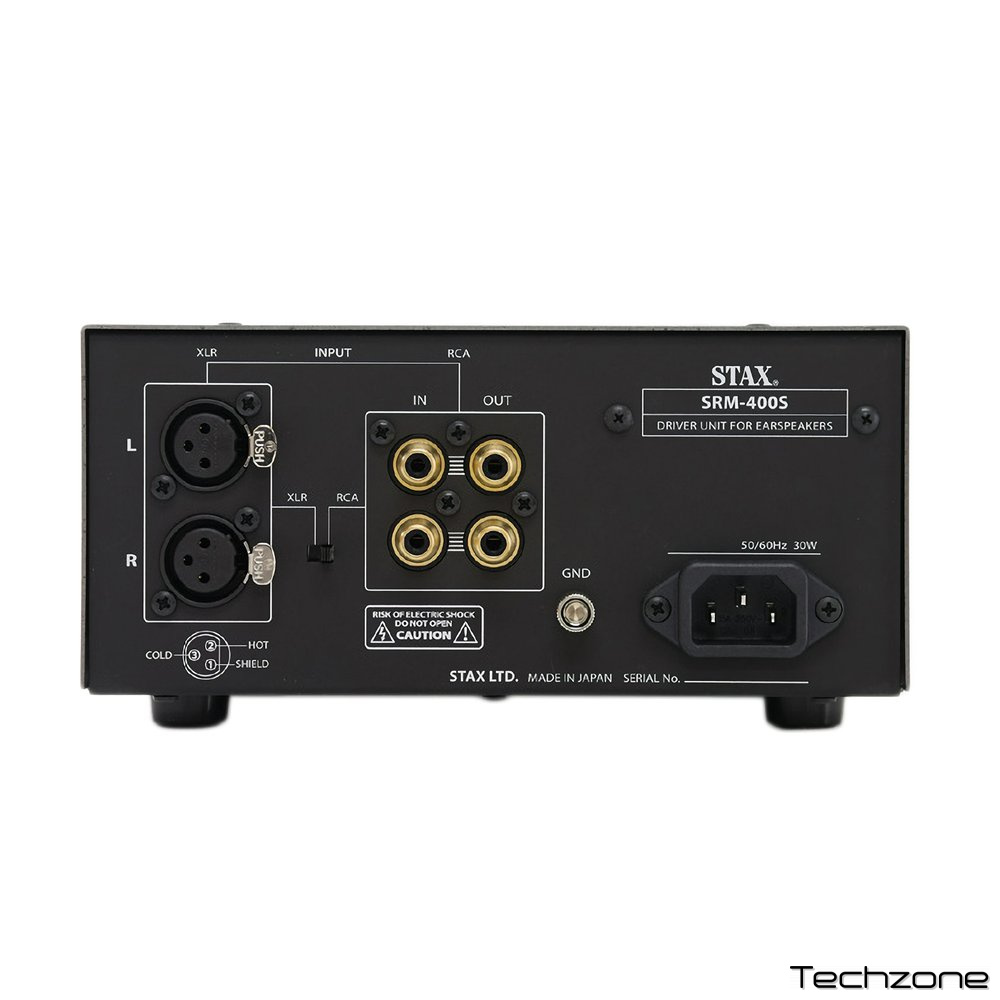 SRM-400S має повністю DC-конфігурацію без розділових конденсаторів у сигнальному тракті — це одна з ключових традицій STAX. Підсилювач забезпечує високу роздільну здатність, характерну для напівпровідникових схем, і потужне, динамічне відтворення низьких частот. Баланс звучання покращено в порівнянні з SRM-353X — всі діапазони звучать гармонійно й узгоджено.