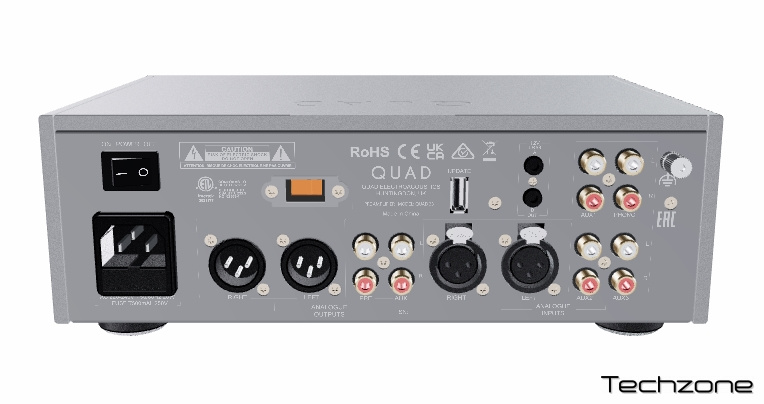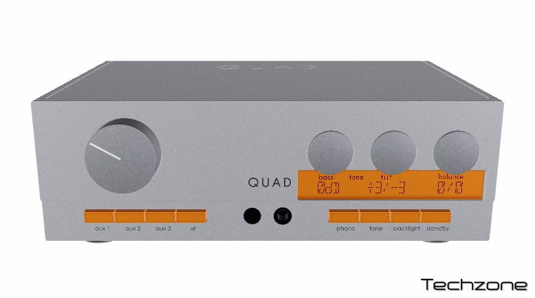 Зовнішній дизайн спеціально призначений для продовження традиції практичної простоти QUAD. Але було б нерозумно ігнорувати реалізацію сучасних можливостей, таких як інформативний дисплей з підсвічуванням, тонка світлодіодне підсвічування і функція дистанційного керування. І, як і в оригіналі, загальний зовнішній вигляд безпомилково виглядає як QUAD, хоча тепер із високоякісною обробленою та анодованою передньою панеллю та суцільнометалевим корпусом.