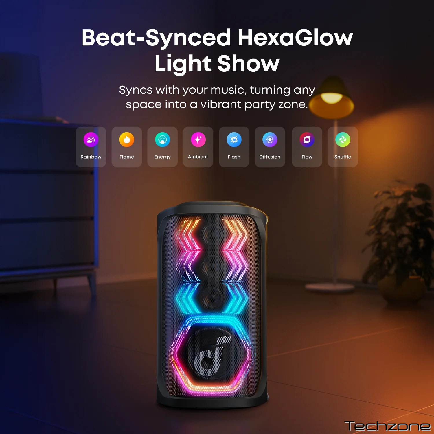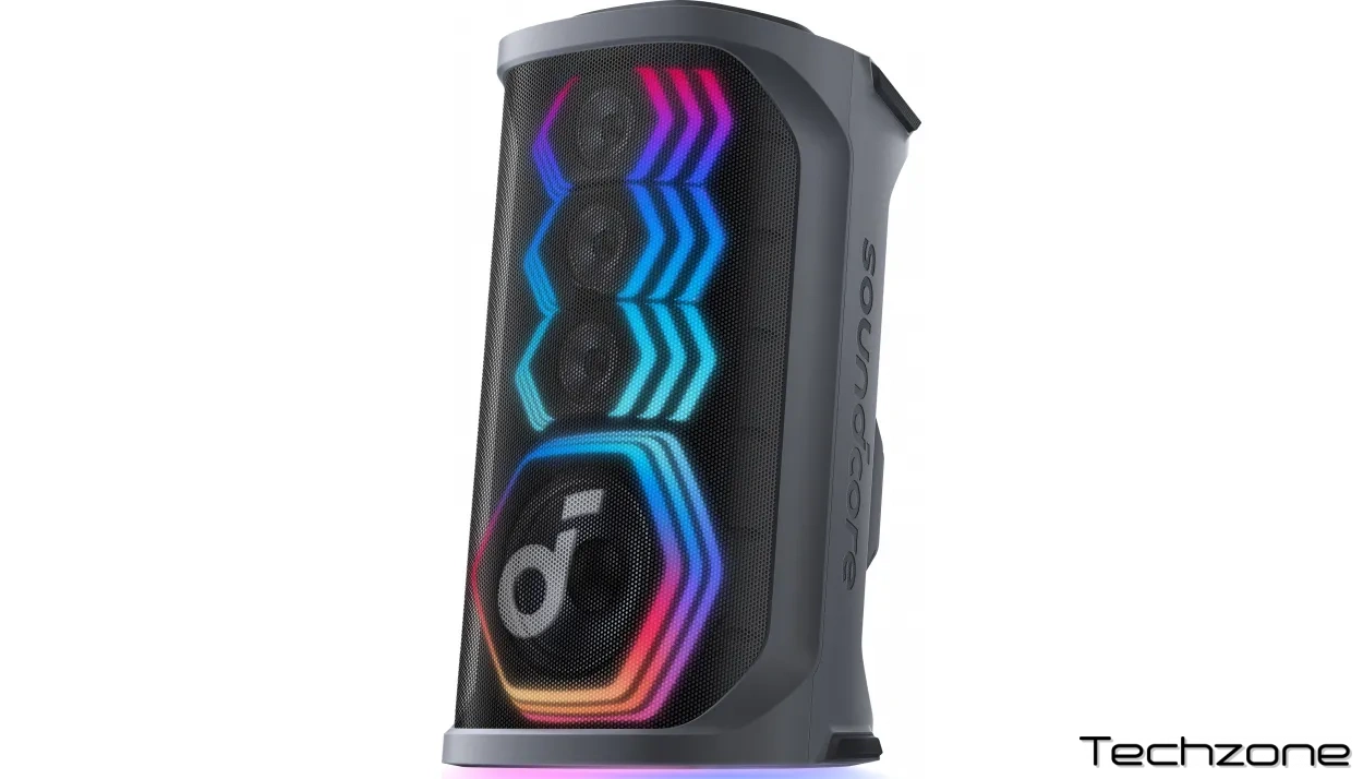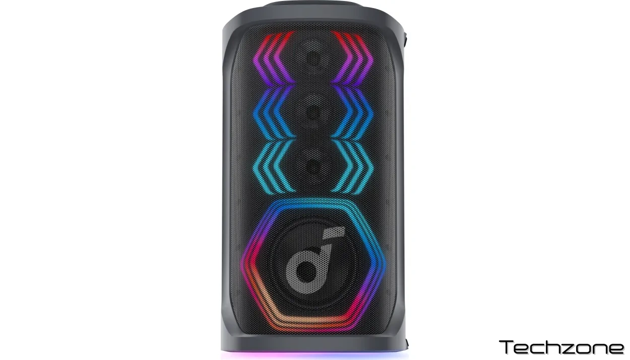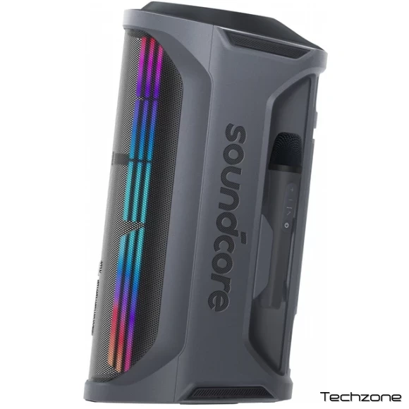 Світлове шоу із синхронізацією до ритму музики пропонує кілька пресетів та налаштування кольорів через застосунок Soundcore, створюючи яскраву атмосферу вечірки. Колонка також підтримує технології BassUp для посилення низьких частот та Spatial Audio Mode для об’ємного звучання. Портативність забезпечується вбудованою ручкою та акумулятором із тривалим часом роботи, а захист від бризок дозволяє використовувати пристрій біля басейну чи в умовах легкої негоди.
