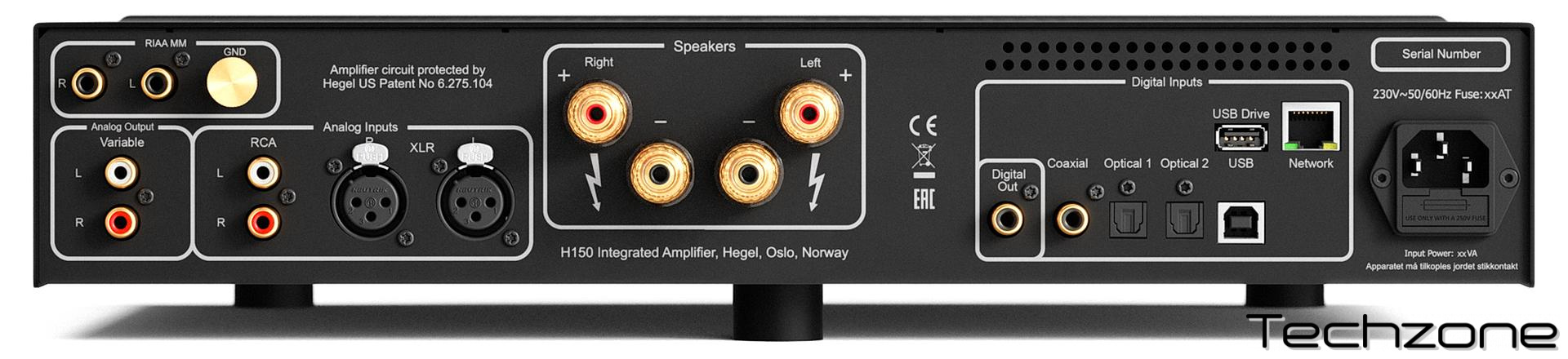H150 чудово працює не лише з цифровими джерелами. З аналоговою стороною також нічого не залишено на волю випадку. H150 має небалансний аналоговий вхід RCA та справжній електронно-балансний аналоговий вхід XLR. Найголовніше, що H150 має високоякісний фонокоректор Moving Magnet, який доповнить будь-який хороший програвач вінілу на базі MM деталізацією та динамікою, які зазвичай доступні лише спеціалізованим фонокоректорам. Підсилювач також має хороший вихід для навушників та лінійний вихід зі змінним рівнем сигналу, що дозволяє легко додавати сабвуфери або зовнішні підсилювачі потужності.