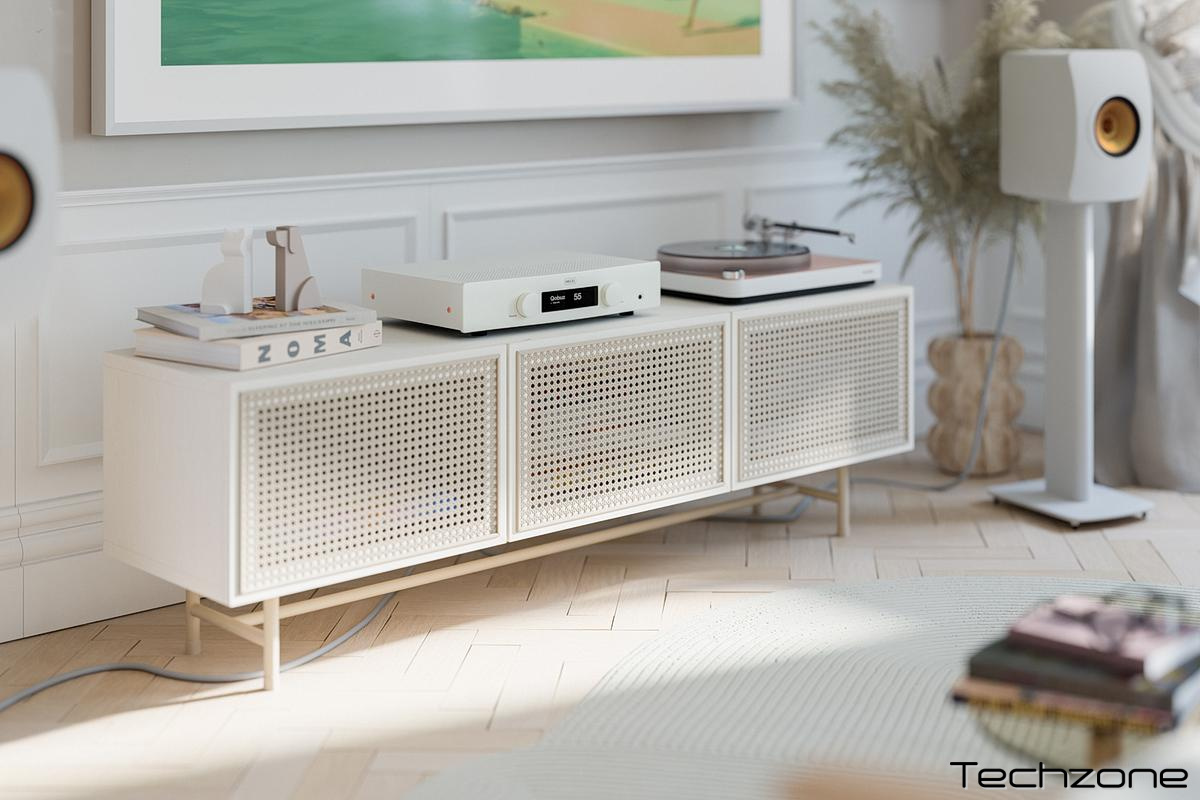 Хоча H150 — це повнорозмірний підсилювач, розроблений для стандартних Hi-Fi компонентів, його глибина всього 35 см дозволяє легко розмістити його на більшості полиць та медіа-шаф. Доступний як у чорному, так і в білому кольорах, чистий, стриманий дизайн H150 доповнить будь-який інтер'єр. Його міцна конструкція включає товсту, точно фрезеровану алюмінієву передню панель та ручки керування, а також сталеву верхню кришку з перфорацією для вентиляційних отворів, що додає йому компактного, сучасного вигляду. Центральний OLED-дисплей забезпечує чітке зчитування інформації здалеку та може бути затемнений або повністю вимкнений відповідно до вашого середовища.