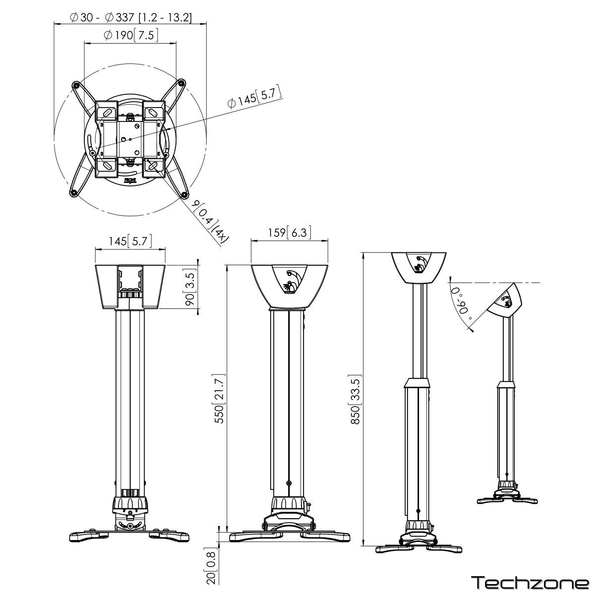Регульовані за висотою стельові кріплення для проекторів можуть використовуватися у випадках, коли висота стелі невідома і потрібна гнучкість рішення. Ці кріплення поставляються в трьох різних довжинах і можуть регулюватися по висоті в діапазоні від 400 до 1350 мм.