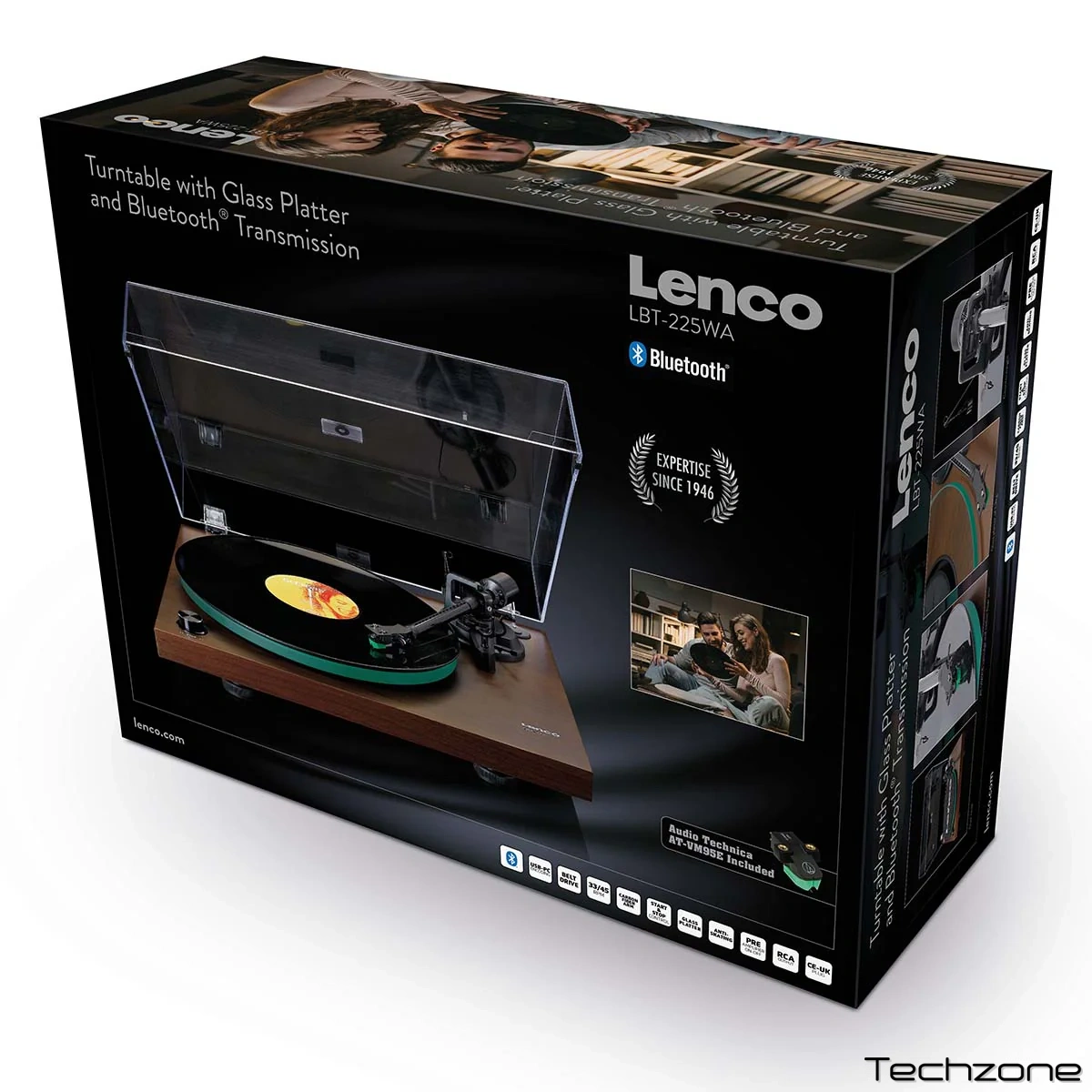 LBT -225 має скляний диск програвача платівок, ремінний привід, роз'єм RCA та карбоновий важіль з противагою. Картридж Audio-Technica AT-VM95E забезпечує теплий звук та якість Hi-Fi для ваших дорогоцінних платівок. Пластикова кришка гарантує, що ваш програвач не зникне під шаром пилу та захищає його від будь-яких зовнішніх пошкоджень.