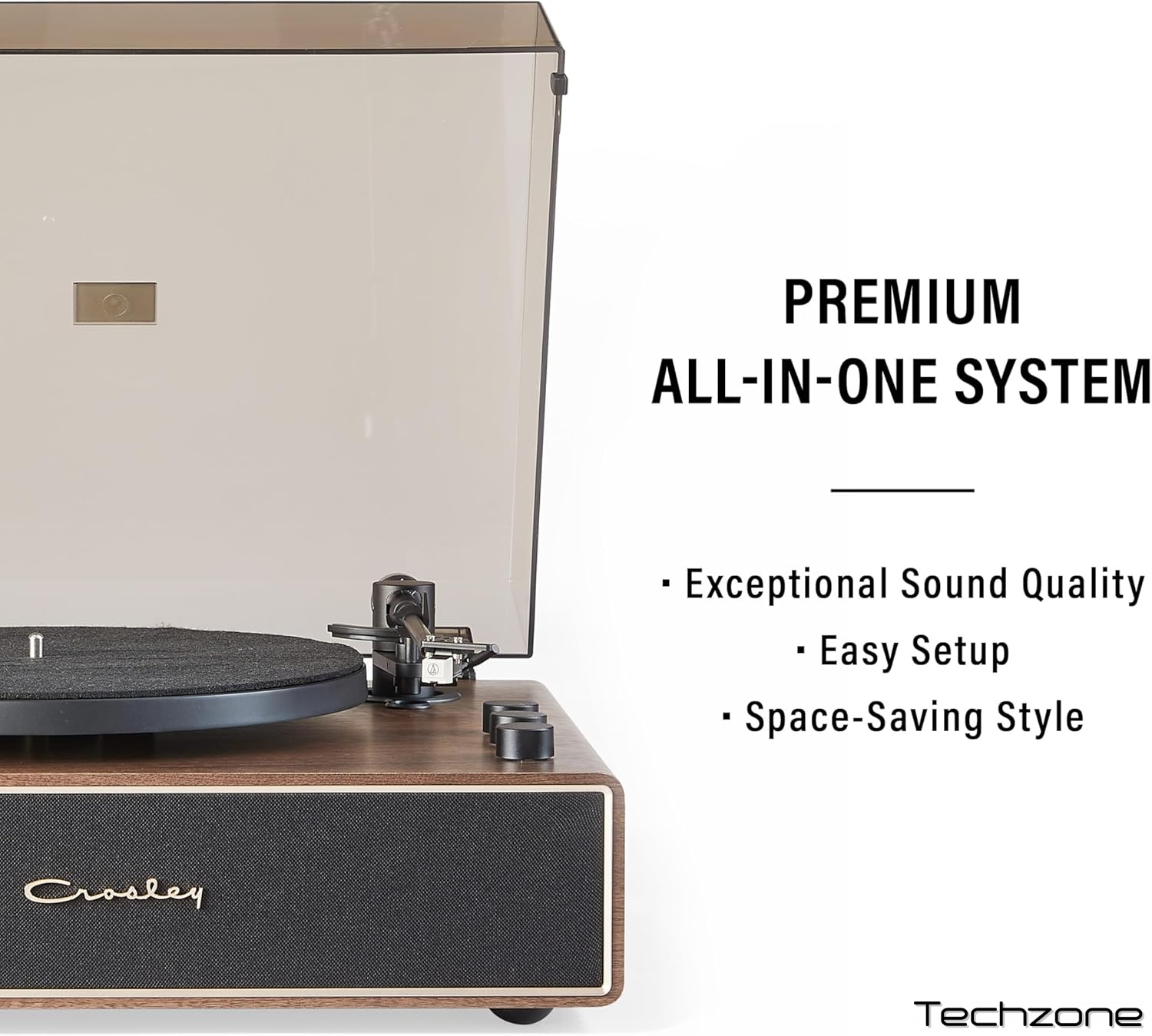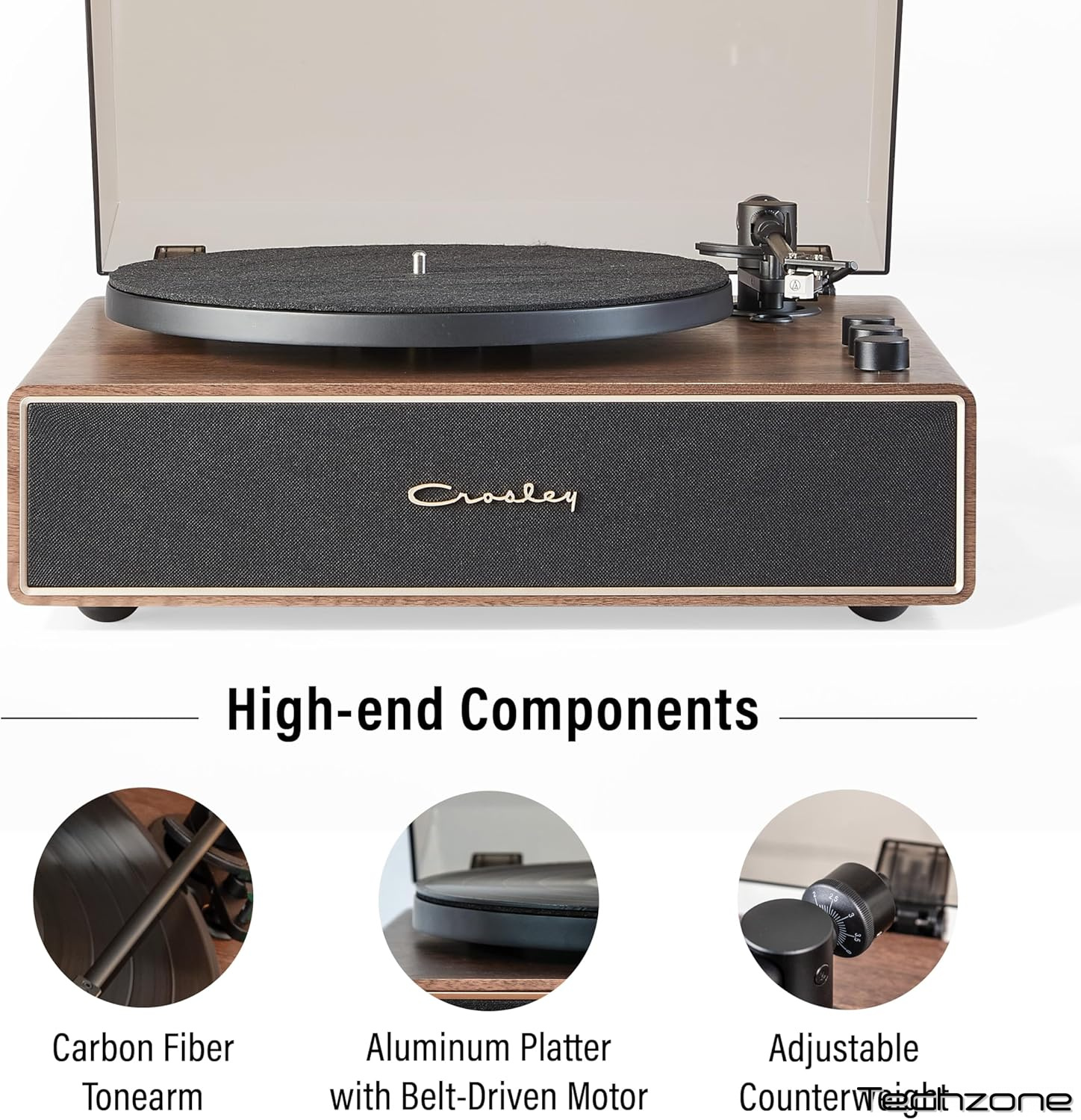 ДВОШВИДКІСНИЙ ПРОГРАВАЧ ІЗ РЕМІННИМ ПРИВОДОМ ТА АВТОСТОПОМ: Відтворює платівки на швидкостях 33 1/3 та 45 об/хв на повнорозмірному алюмінієвому опорному диску. До комплекту входять тонована пилозахисна кришка, 12-дюймовий повстяний сліпмат та адаптер на 45 обертів.