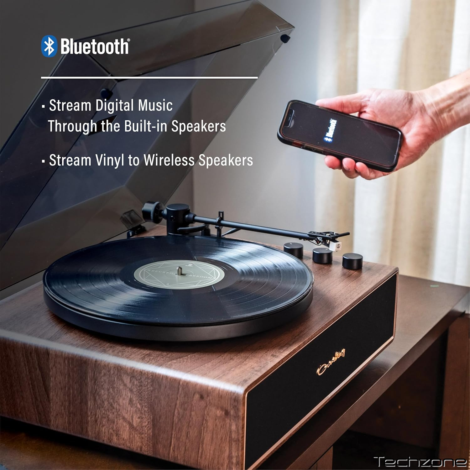 BLUETOOTH-ПРОГРАВАЧ: Функція Bluetooth дозволяє легко транслювати ваші альбоми на бездротові колонки або навпаки — передавати музику зі смартфона на вбудовані повнодіапазонні стереодинаміки програвача.