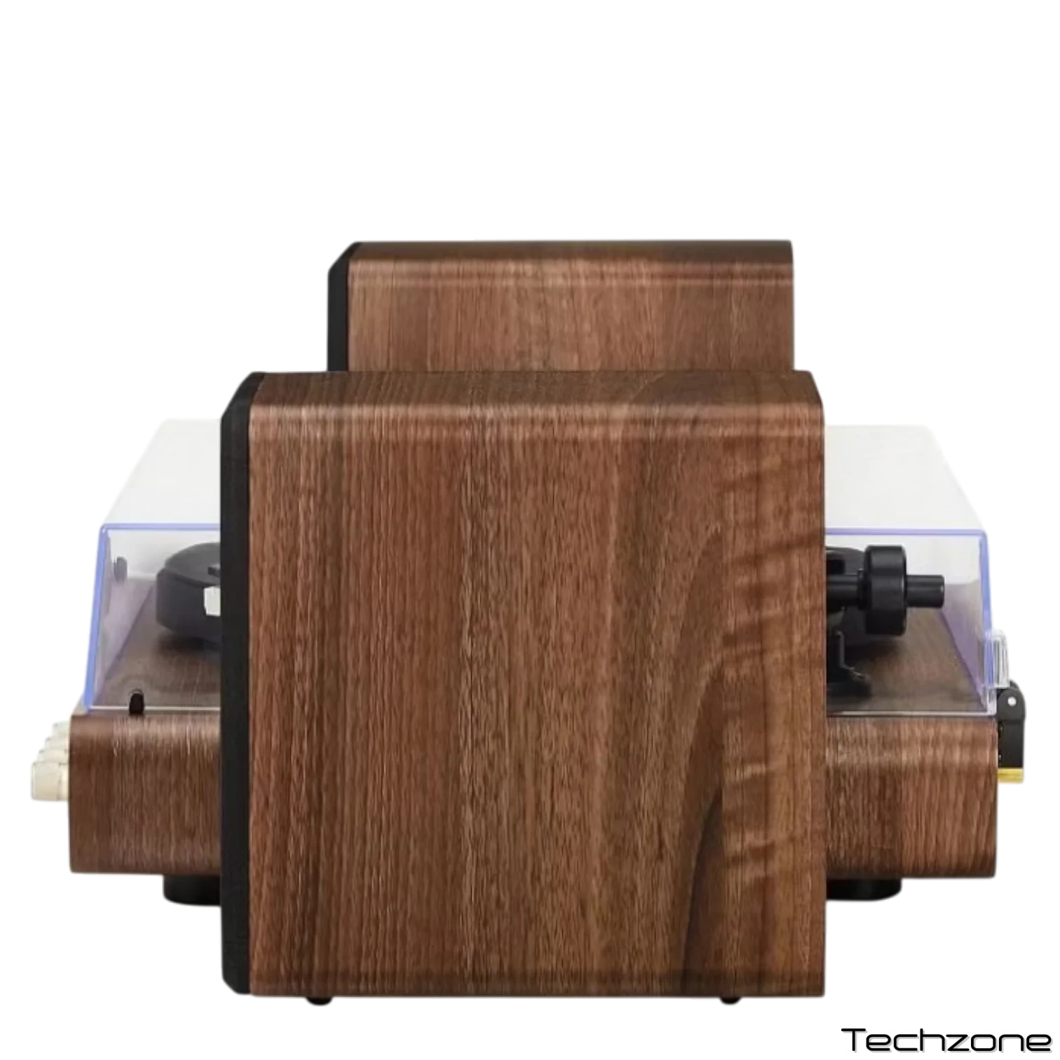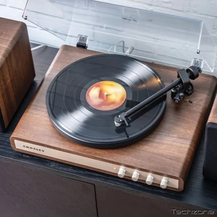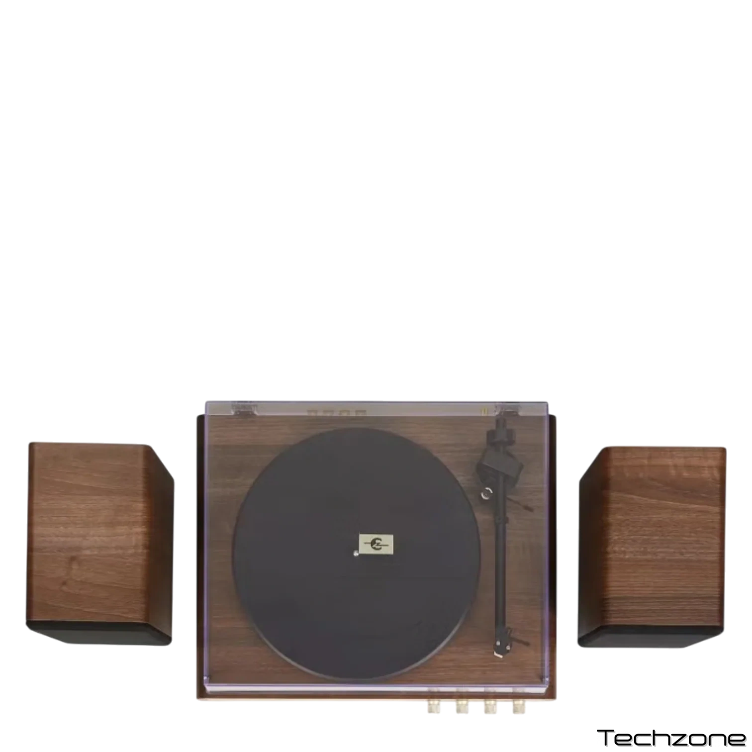 ДВОШВИДКІСНИЙ ПРОГРАВАЧ ІЗ РЕМІННИМ ПРИВОДОМ: Відтворює платівки на швидкостях 33 1/3 та 45 об/хв на повнорозмірному сталевому опорному диску. Програвач оснащений алюмінієвим тонармом із мікроліфтом (важелем підйому), а також функцією регулювання швидкості (Pitch Control). У комплект також входить прозора пилозахисна кришка, яку можна опускати безпосередньо під час відтворення платівки.
