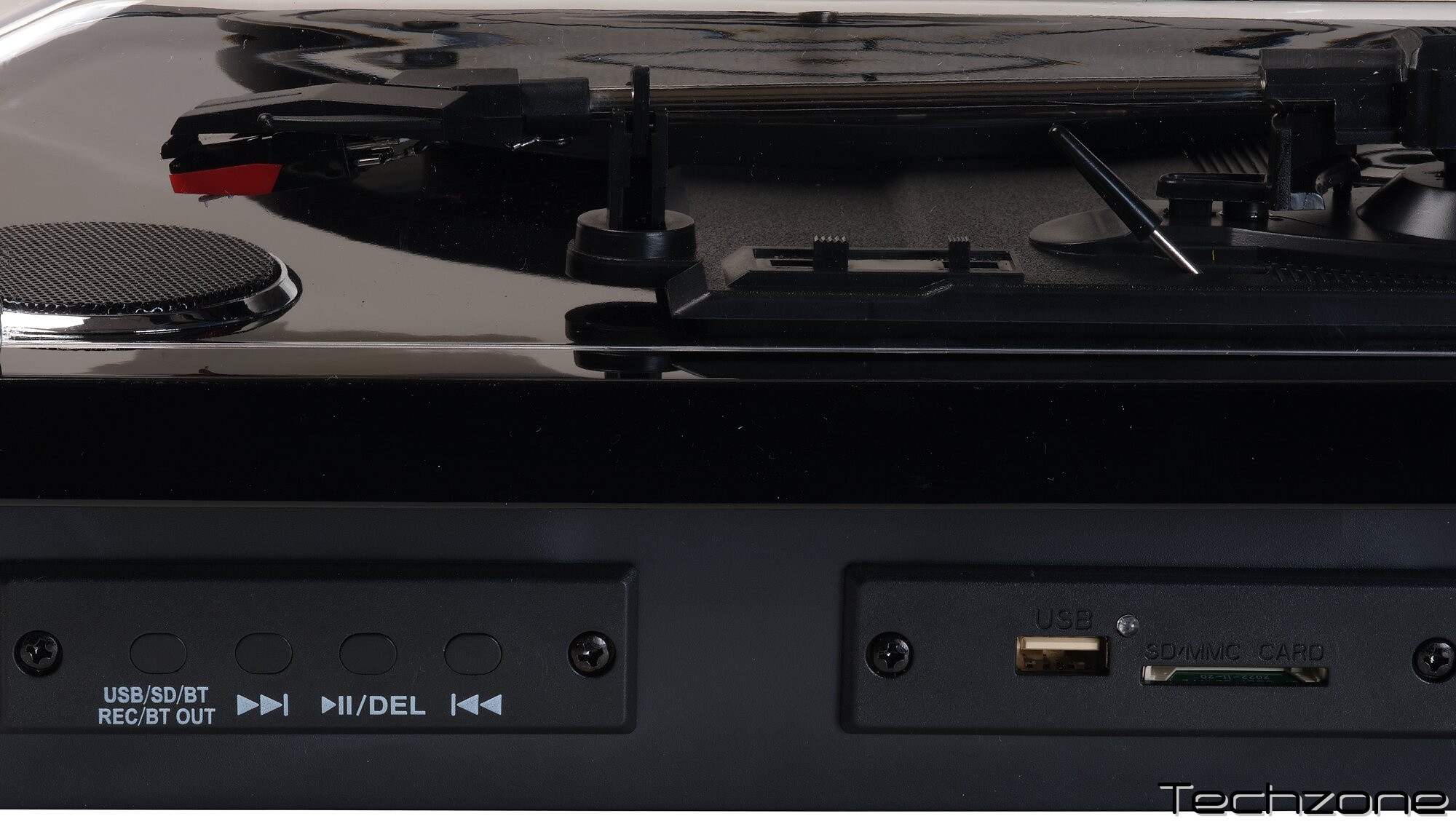 Основні моменти Вбудовані динаміки, вихід для звуку, відтворення вінілових платівок зі швидкістю 33 1/3, 45 і 78 обертів за хвилину, відтворення та запис MP3 на карті USB/SD, функція подвійного Bluetooth для отримання та передачі аудіо