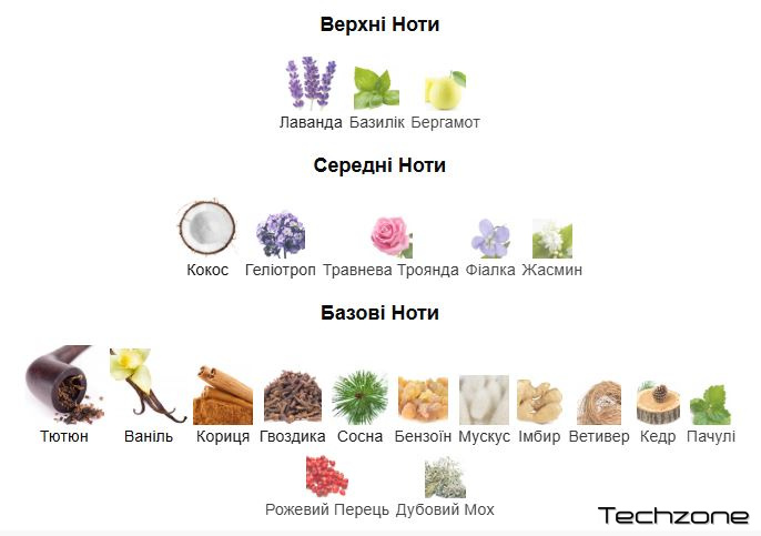 Початкова нота розкривається прохолодним ранковим бризом з акордами цитрусового бергамота, пряного базиліку і м’якої лаванди.